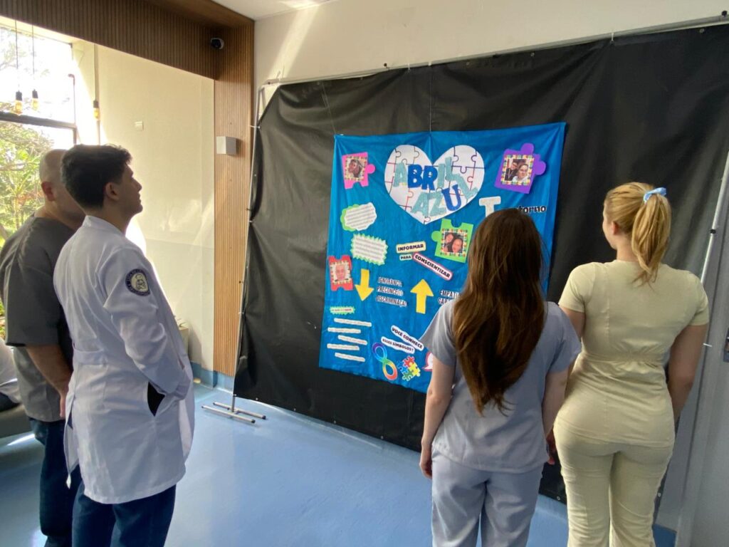 Como parte das atividades, a Comissão de Humanização do hospital criou um mural com fotos de colaboradores que estão no espectro autista ou que possuem familiares com TEA. A proposta é dar visibilidade às experiências e estimular o diálogo dentro da unidade.