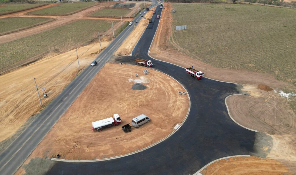 O serviço está sendo realizado, no momento, entre o Jardim das Orquídeas e a nova rotatória. O trecho seguinte ainda vai receber as etapas de preparação da base e implantação das guias, a fim de garantir a estabilidade e a durabilidade da nova via.