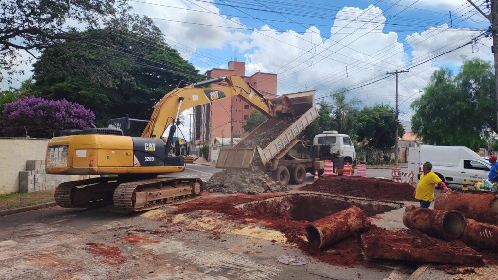 A intervenção inclui a reforma da caixa central da galeria, vistoria em toda a extensão da rede para identificação de possíveis vazamentos e substituição de trechos da tubulação. O objetivo é manter o funcionamento do sistema de drenagem e evitar problemas como acúmulo de água e danos ao pavimento.