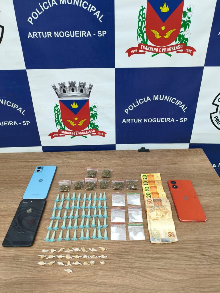 Uma ação da Guarda Municipal de Artur Nogueira, com apoio do Canil da GCM, da ROMU de Estiva Gerbi e da ROMU de Engenheiro Coelho, localizou entorpecentes e deteve dois indivíduos na madrugada de segunda-feira (16).