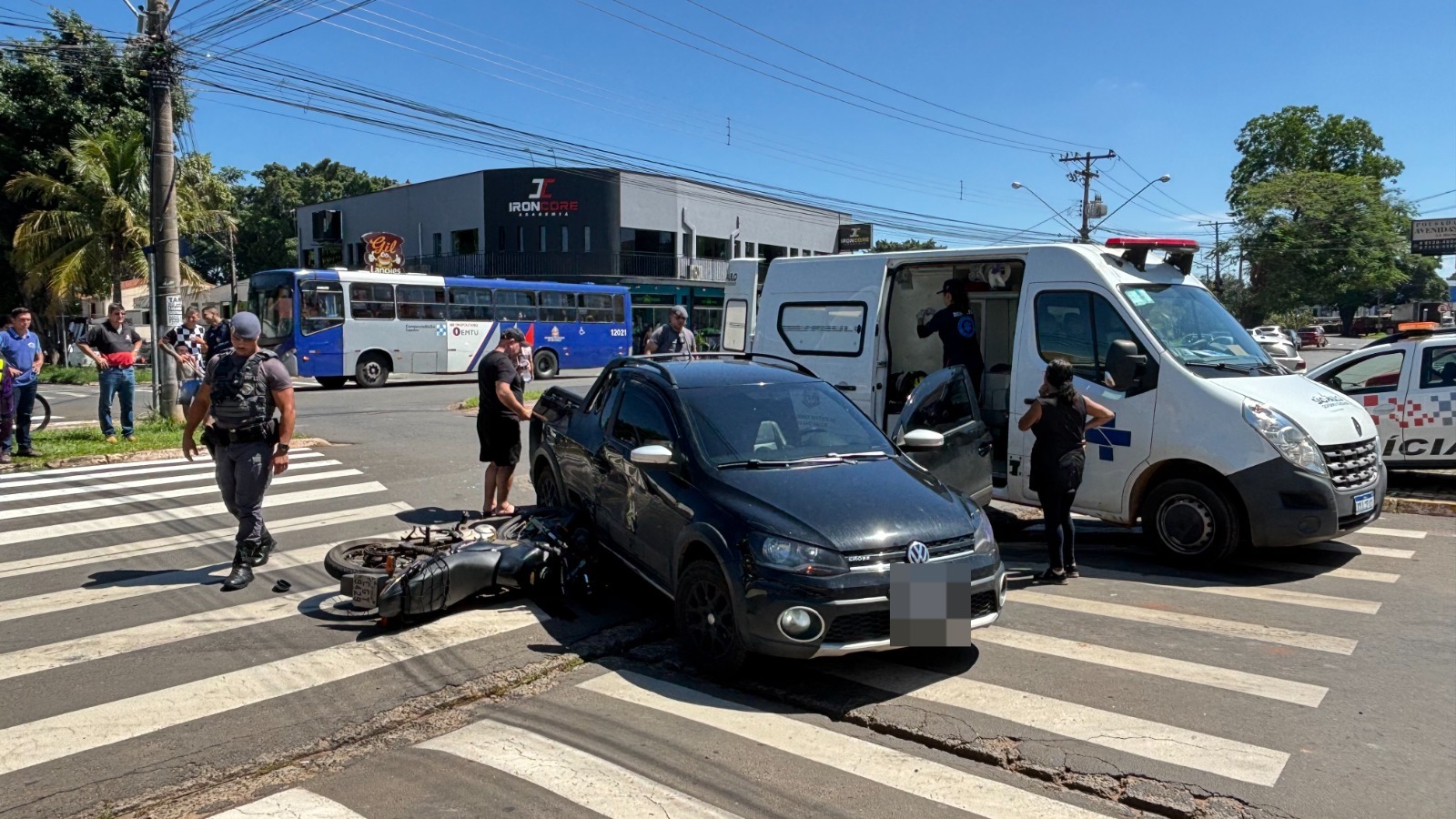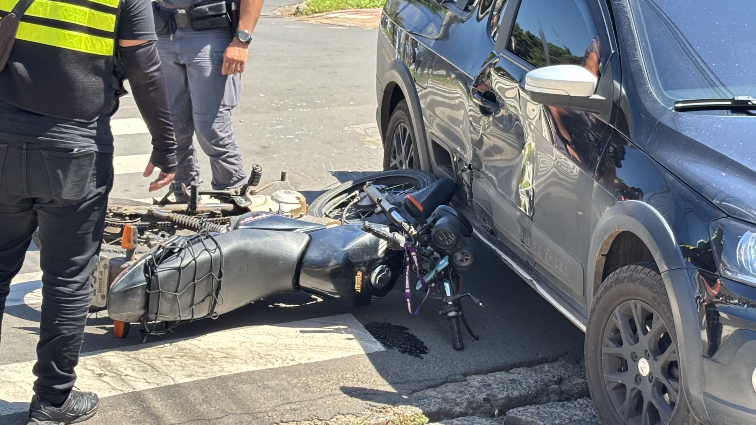 Segundo informações da Polícia Militar do Estado de São Paulo, o condutor da moto seguia pela Avenida XV de Novembro quando, ao chegar ao cruzamento, colidiu frontalmente contra a lateral de uma VW/Saveiro Cross. No momento do atendimento, ele se queixava de dores e apresentava um ferimento no braço causado por estilhaços de vidro. A vítima foi encaminhada ao Pronto-Socorro.