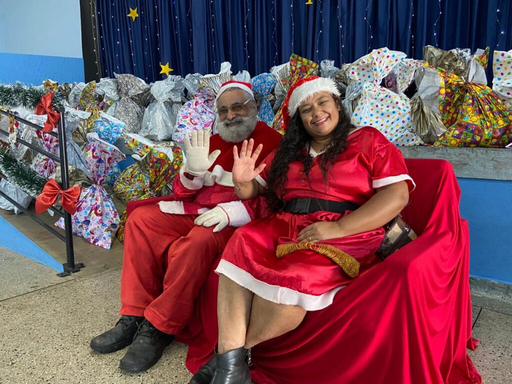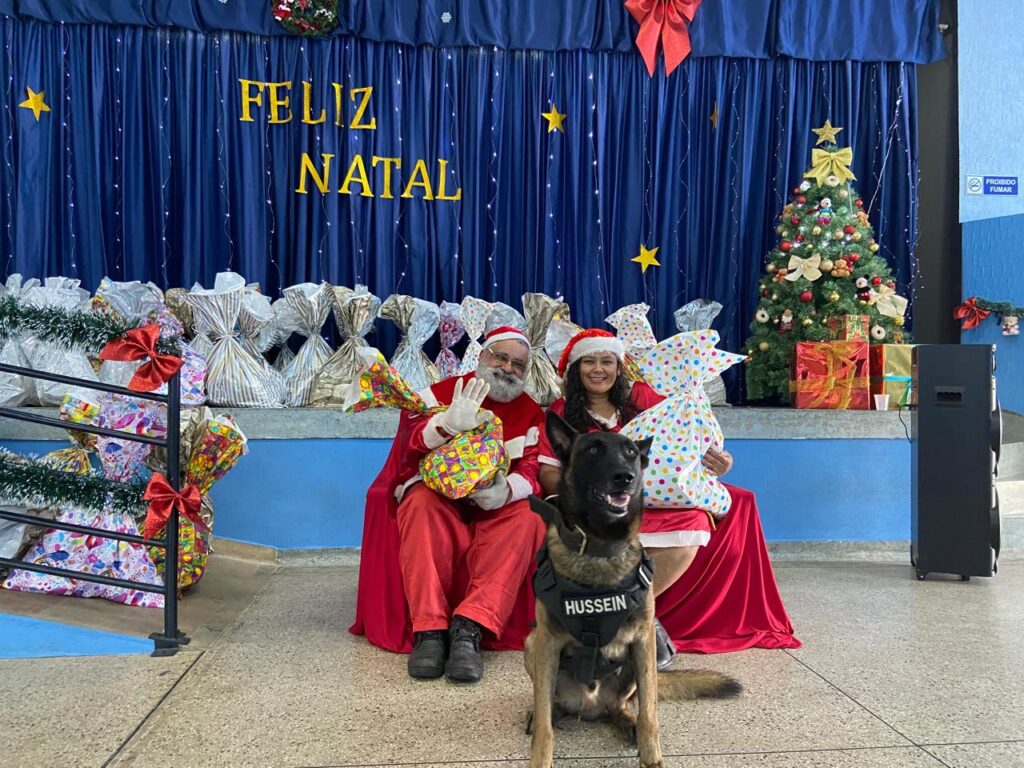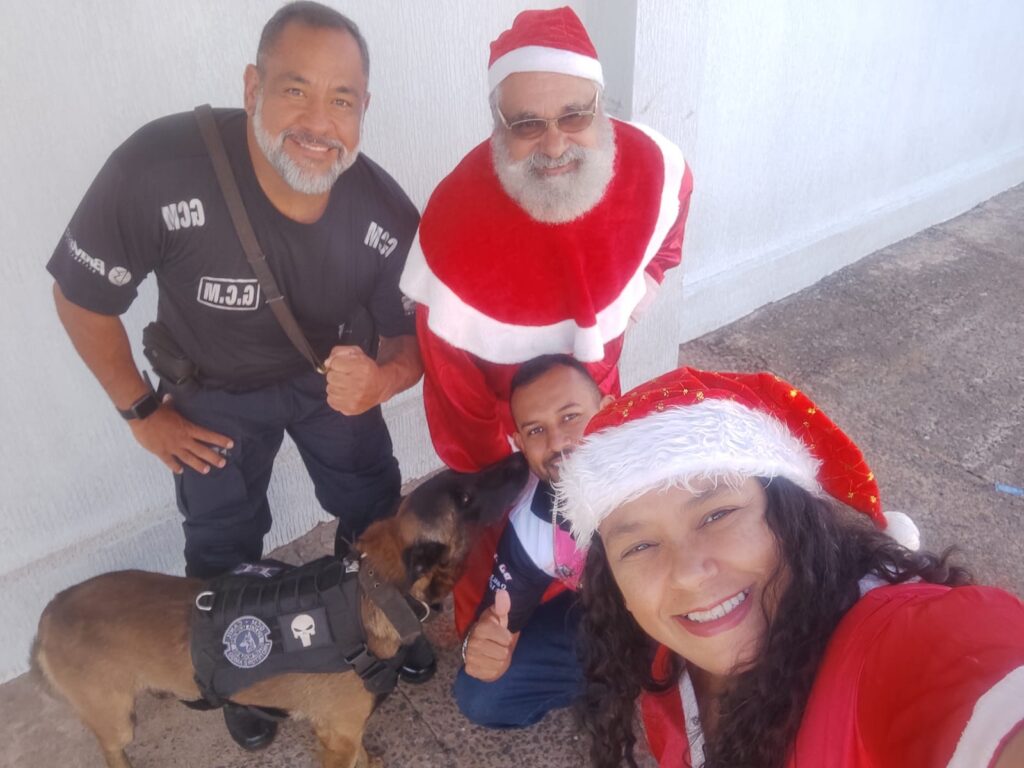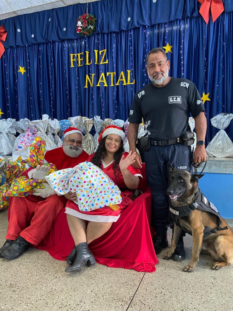 Durante a visita, a GCM marcou presença com o Projeto Guarda Pet Terapia, representado pelo subcomandante Heder, pelos inspetores Carneiro e Paschoal, pelo K9 Russen e pela Guarda Mirim Helena. A celebração contou ainda com a participação do Papai Noel e da Mamãe Noel, interpretados por Tia Dri e Ricardo, além da Equipe da Carreta Exkclusiva, que contribuiu para tornar o momento ainda mais festivo e inesquecível.