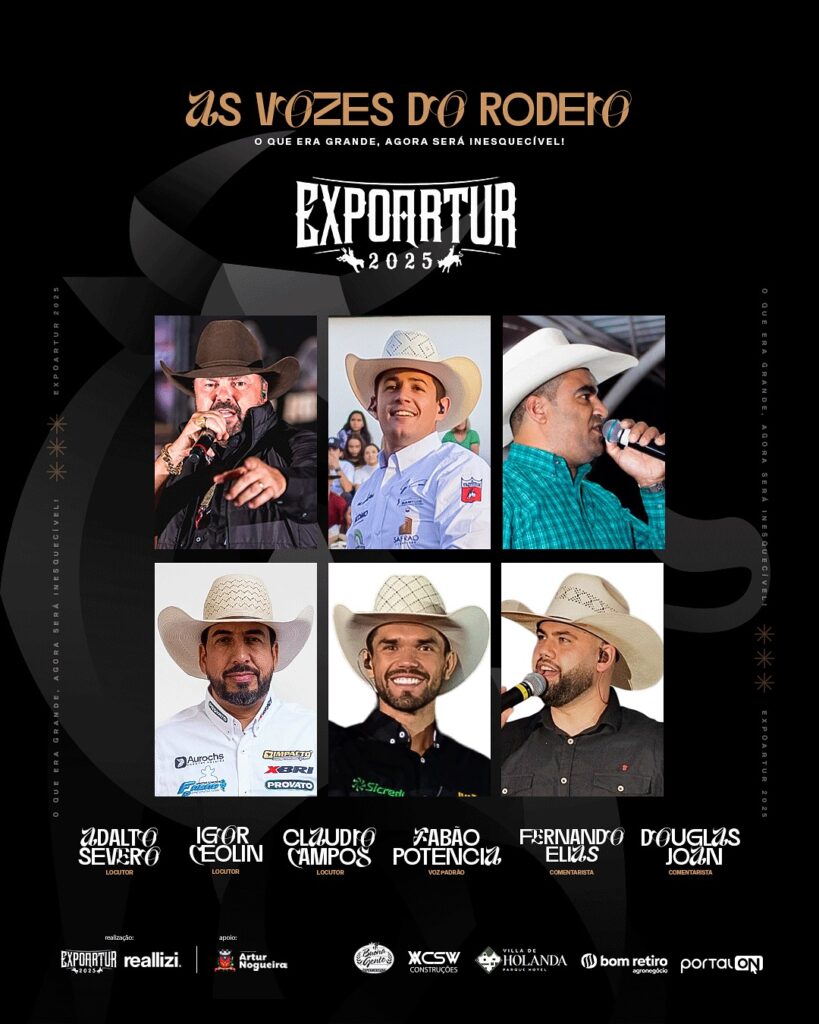 Com esse time de peso, a Expo Artur 2025 promete uma experiência inesquecível para os fãs do rodeio e da cultura sertaneja. As vozes da arena serão o elo entre o público e as grandes emoções que tomam conta do recinto a cada noite.