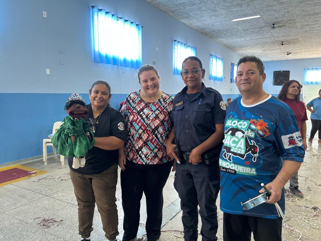 Além da bateria, a “Vaca” também esteve presente na ação, assim como a boneca “Violeta” e agentes da Guarda Municipal.