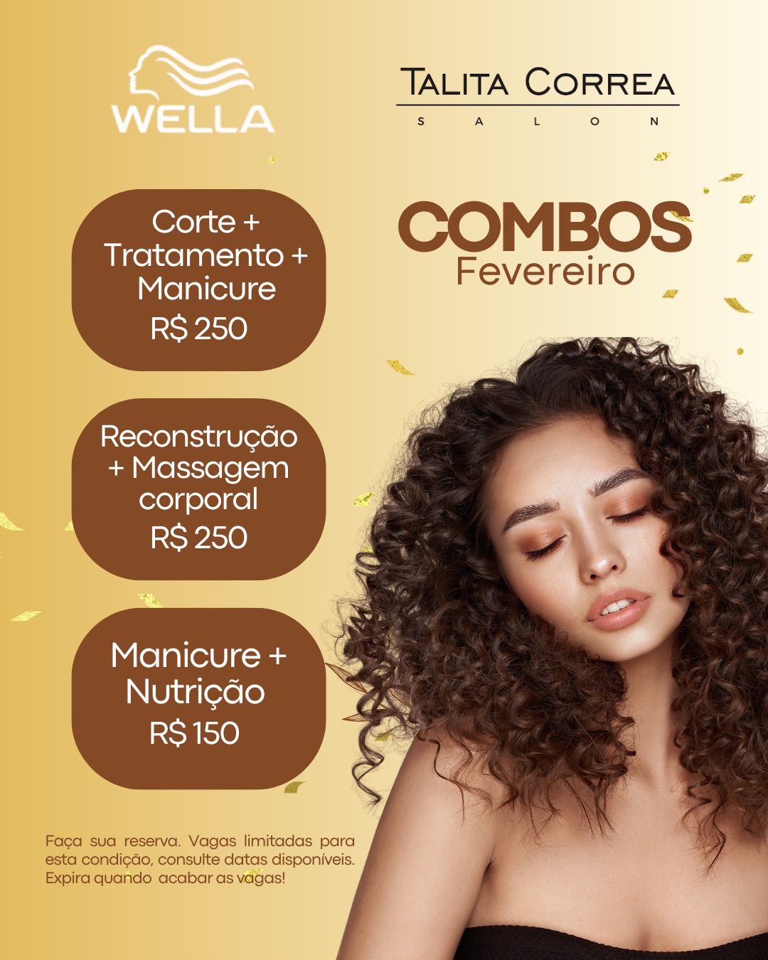 O Talita Correa Salon traz oportunidades imperdíveis para quem não abre mão de cuidar da autoestima com qualidade e profissionalismo. O Talita Correa Salon, referência em beleza e bem-estar em Artur Nogueira, lançou uma série de Combos de Fevereiro que combinam os serviços mais desejados em pacotes com valores promocionais.