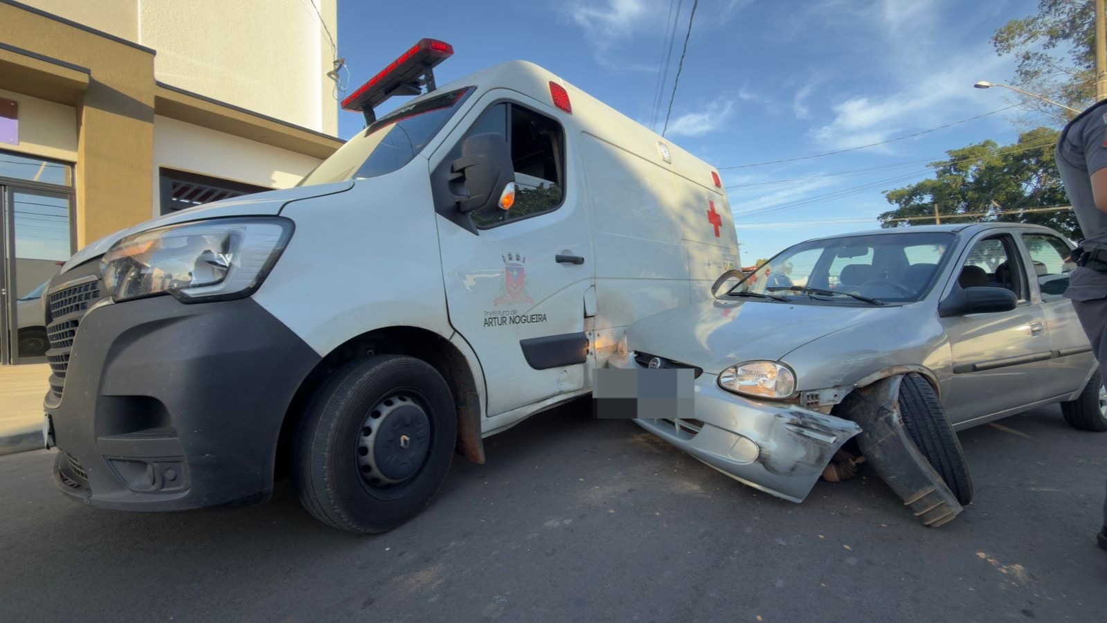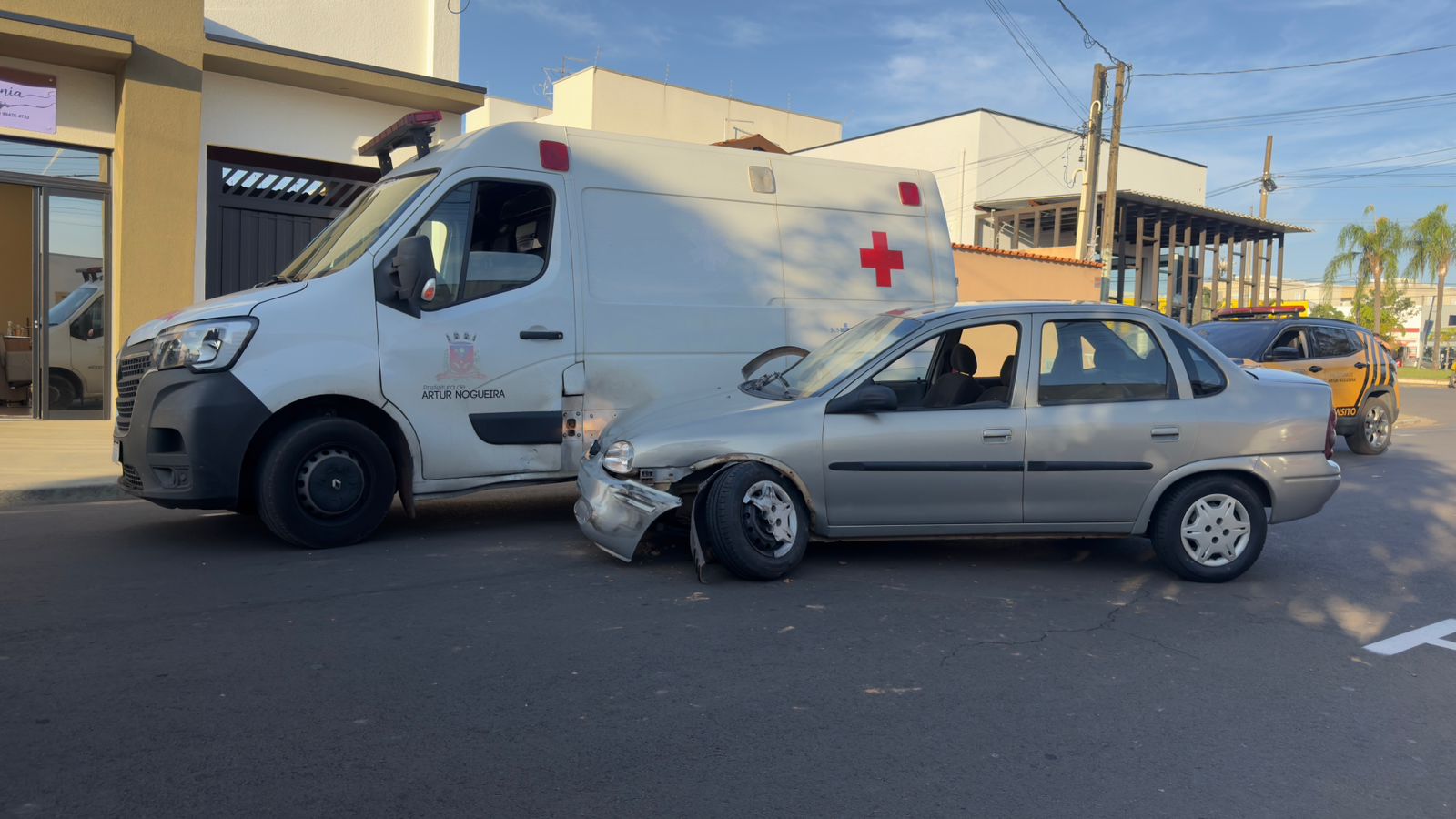Carro perde controle e atinge ambulância em Artur Nogueira