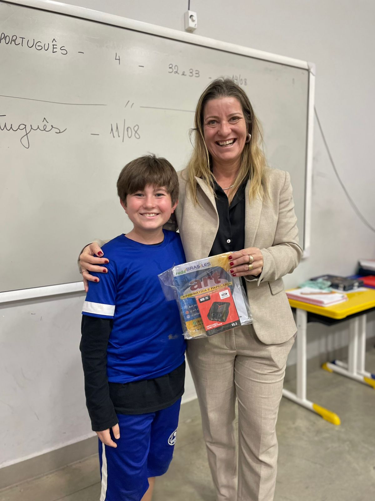 Durante a visita, cada estudante recebeu uma lembrancinha como gesto simbólico de valorização e incentivo. Em algumas turmas, a comemoração contou também com sorteios de brindes patrocinados pela Art Informática, parceira da escola, que ajudou a tornar o momento ainda mais especial.
