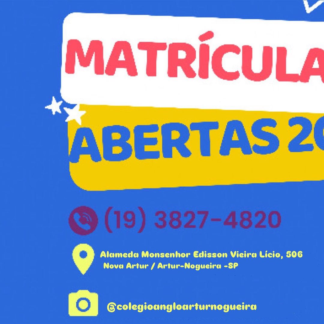 O Colégio Anglo está com matrículas abertas para o ano letivo 2025 nos segmentos: Educação Infantil, Ensino Fundamental I, Ensino Fundamental II e Ensino Médio. Interessados já podem agendar visitas e garantir vagas.