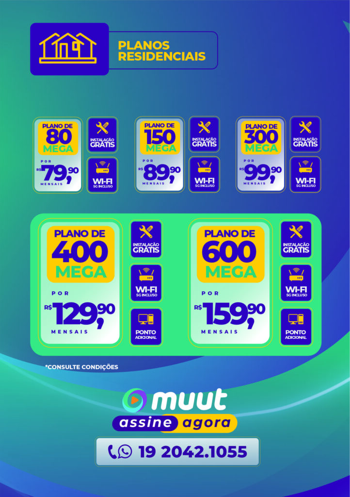 A Muut Internet está de portas abertas para recebê-lo de segunda a sexta-feira, das 8h30 às 18h, e aos sábados, das 9h às 13h. A Muut está localizada na Rua Rui Barbosa, Nº 925 – Centro. O telefone para contato é o (19) 2042-1055. Siga a Muut no Facebook e no Instagram e fique por dentro de todas as novidades.