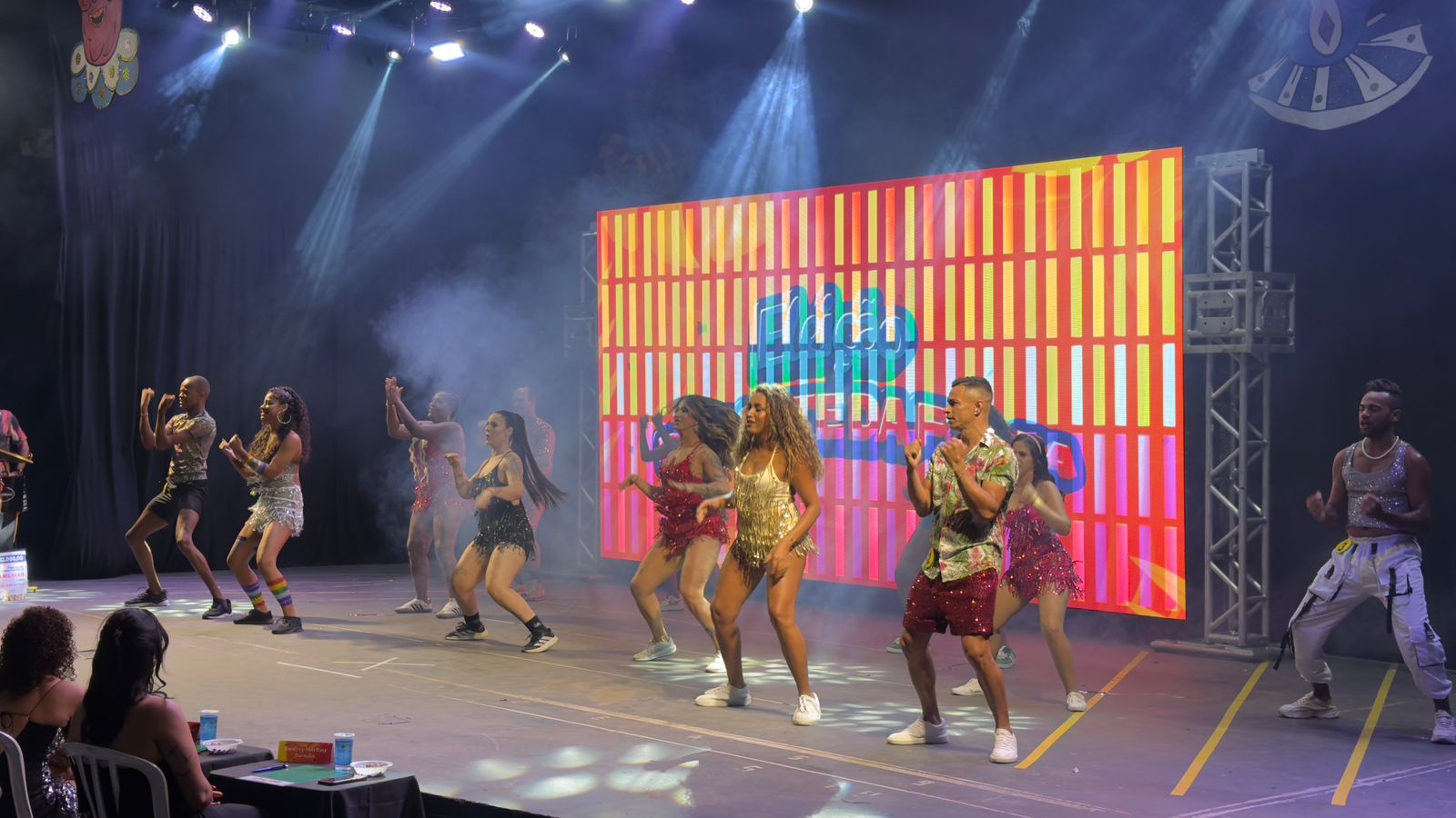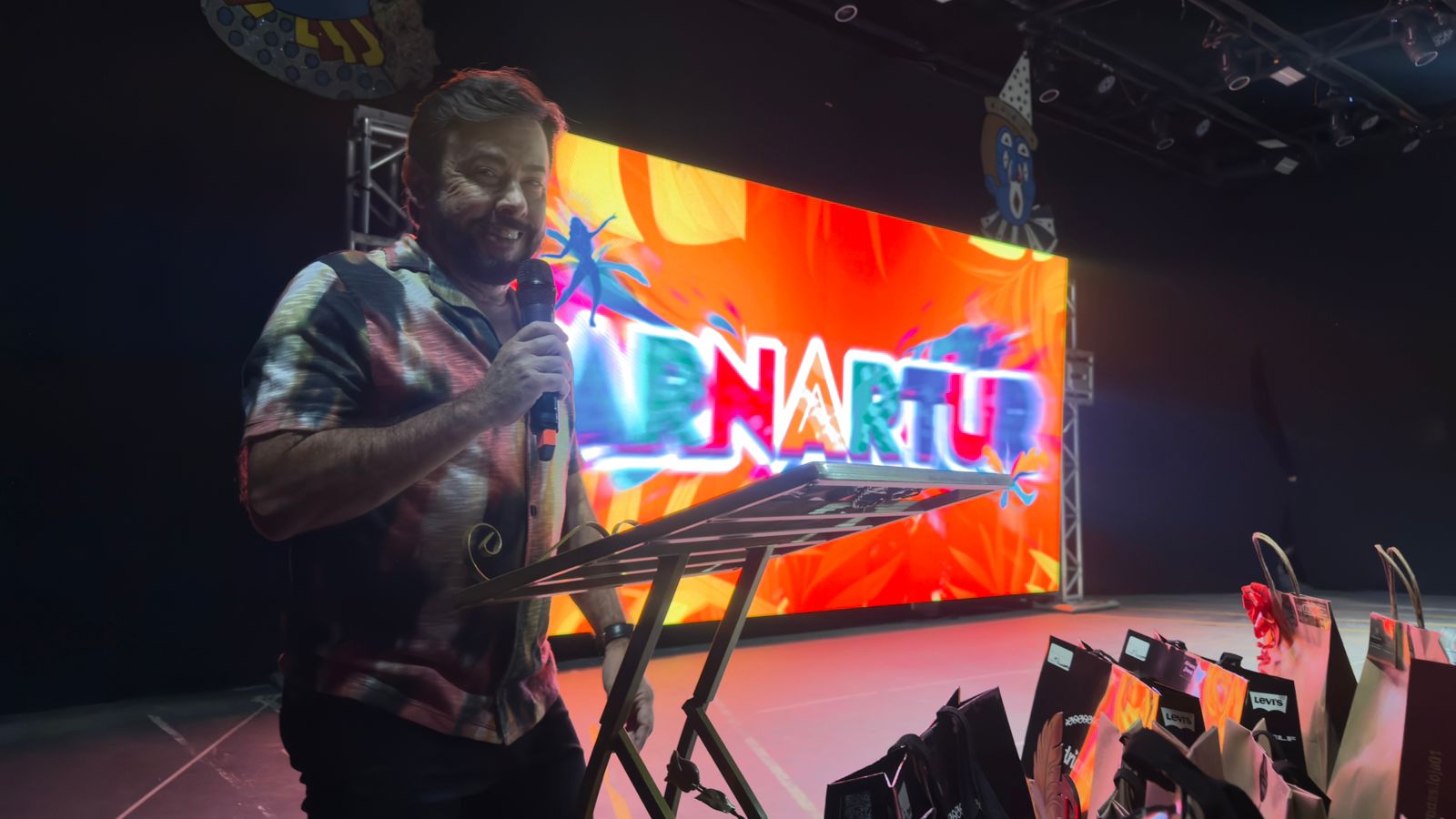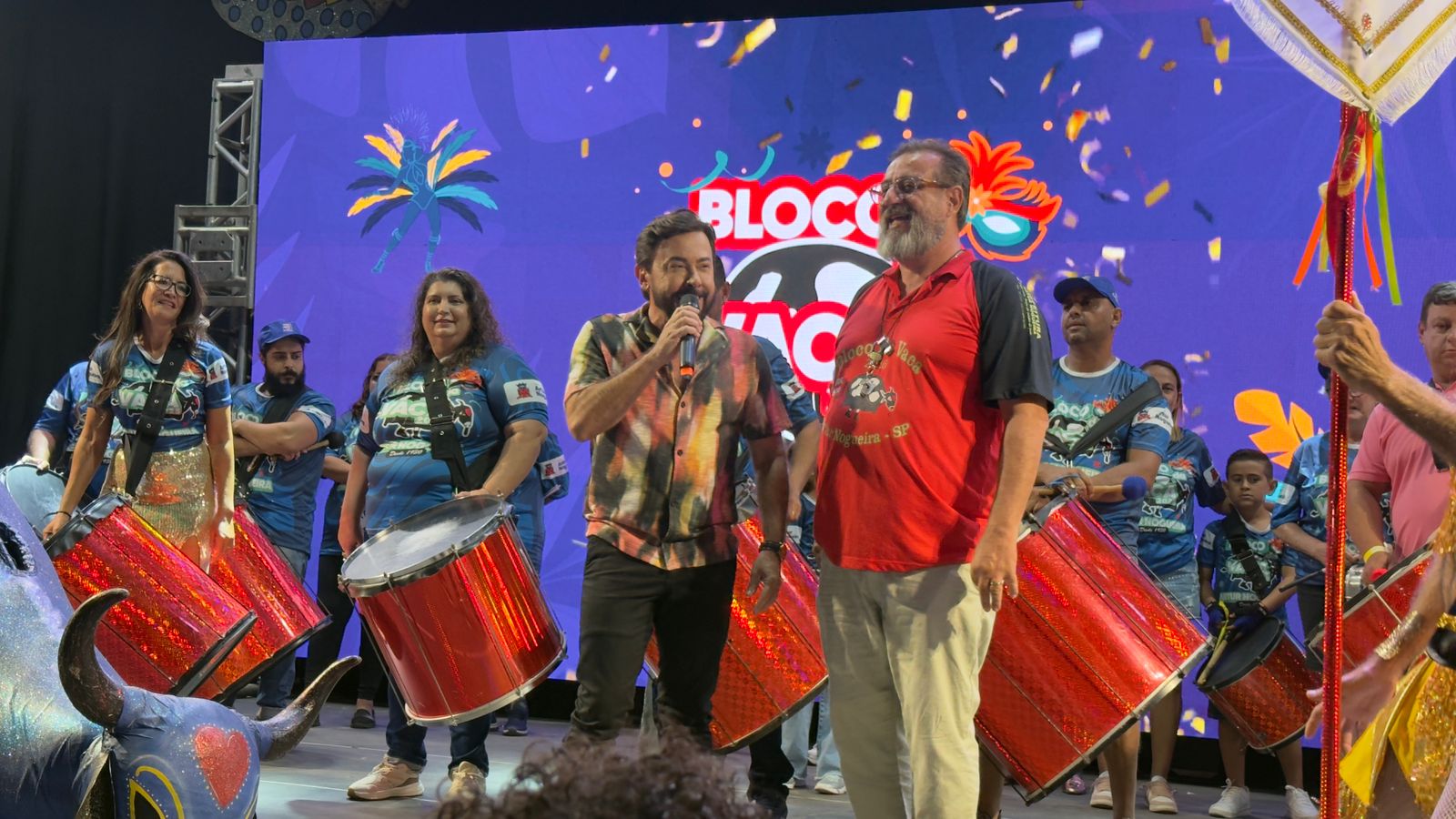 Um dos momentos mais simbólicos da noite foi a participação especial do quase centenário Bloco da Vaca, que levou ao palco uma prévia do clima irreverente e tradicional que marcará o Carnartur 2026.