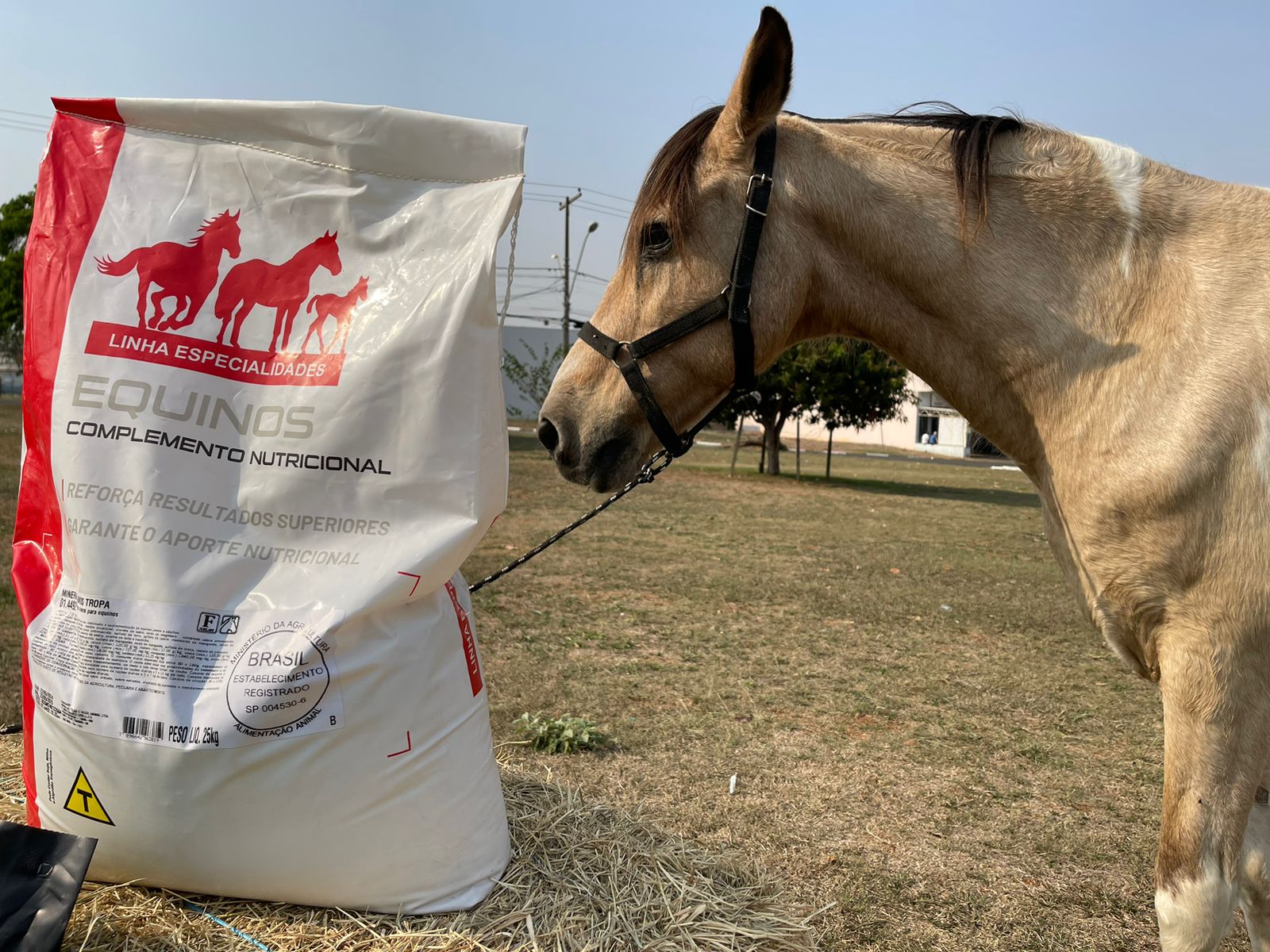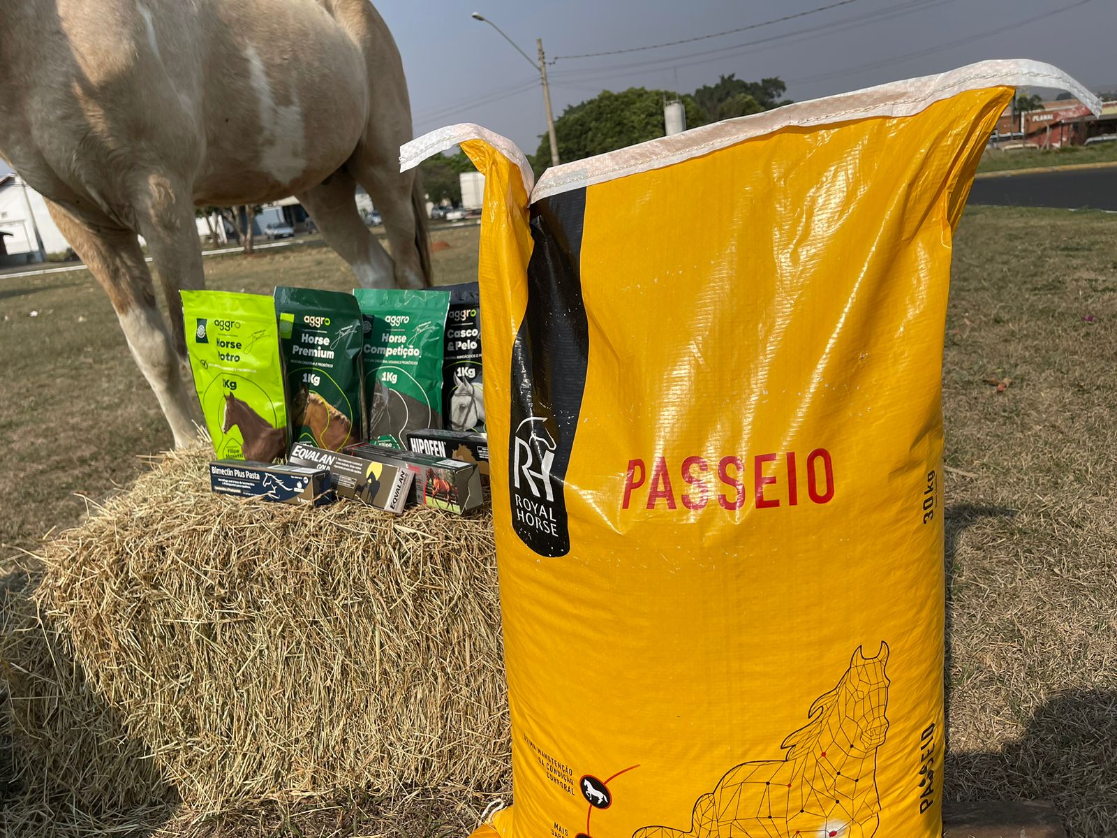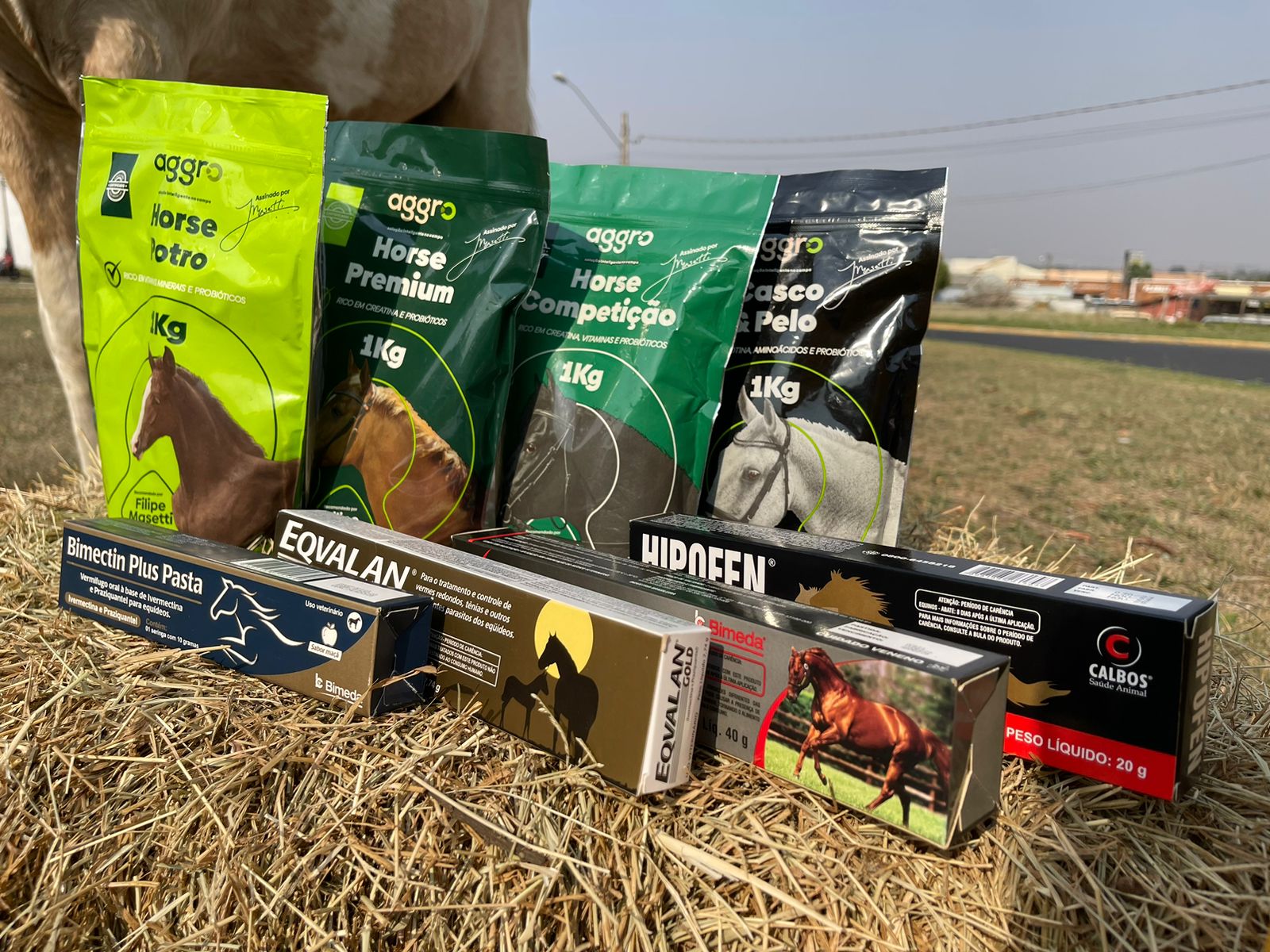A loja possui rações balanceadas, suplementos AGGRO e vermífugos para a proteção e desempenho dos equinos