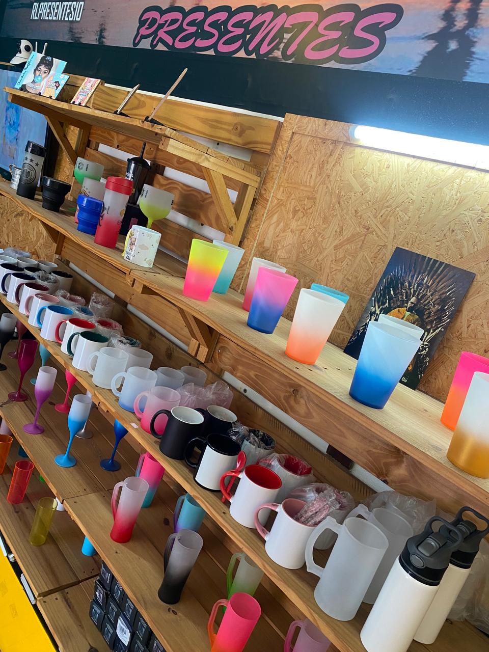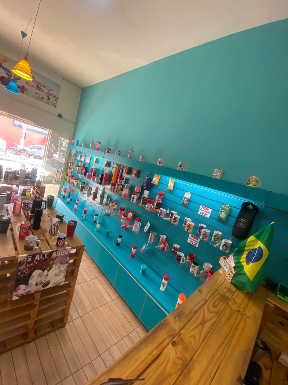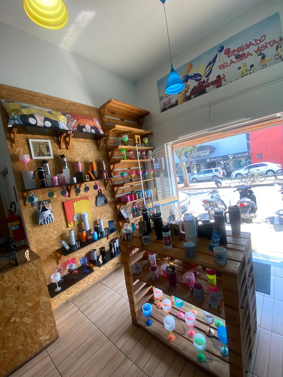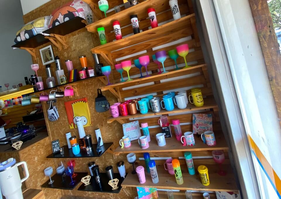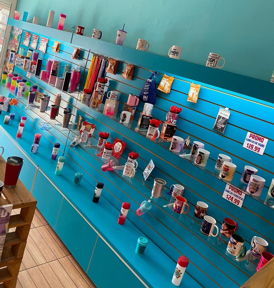 A loja oferece uma linha exclusiva de garrafas, copos e canecas personalizadas impressos e entregues na hora! Além disso, você encontra outras opções graciosas com preços acessíveis