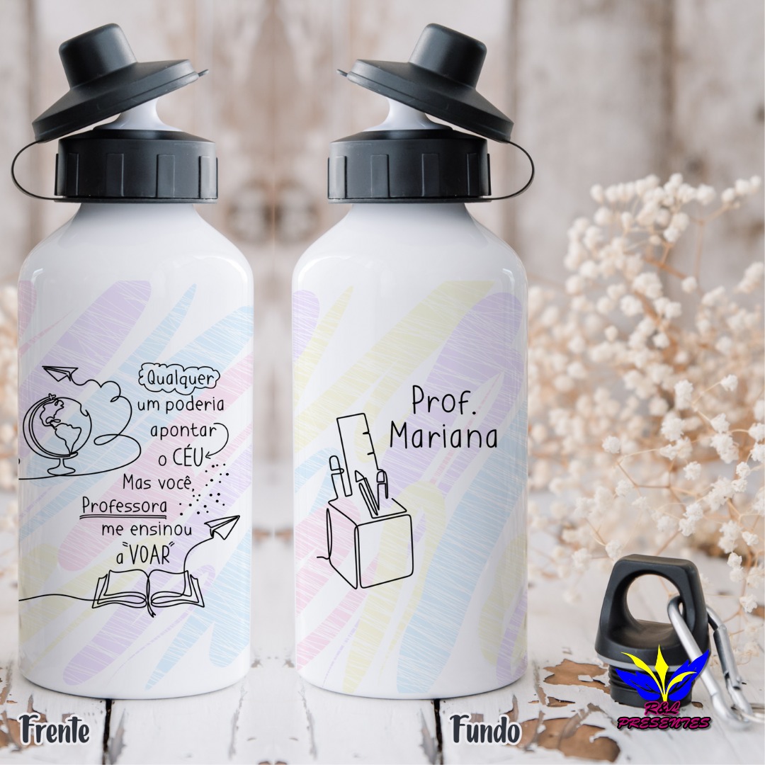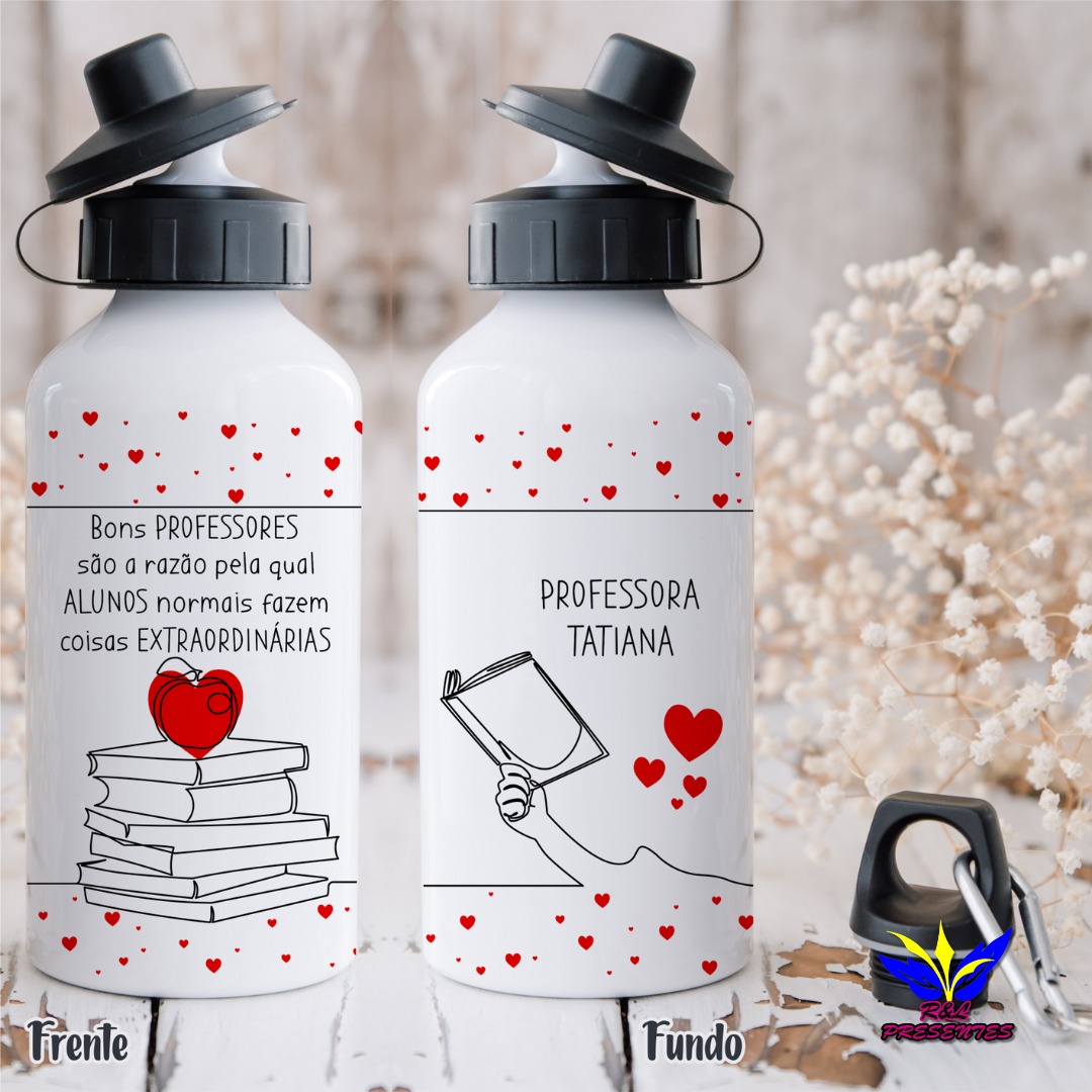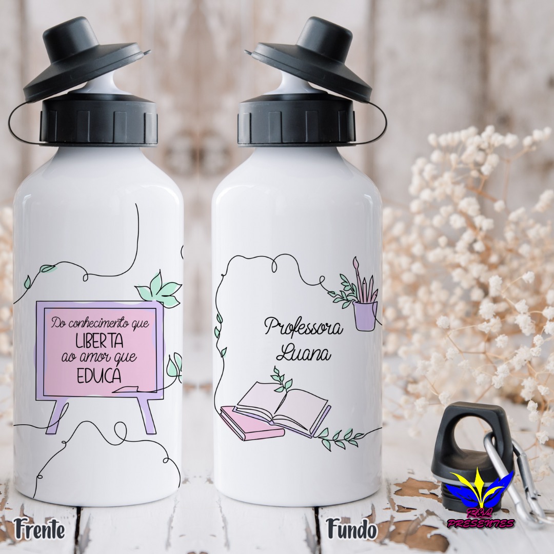Na RL Presentes, além das canecas, as garrafas personalizadas são uma escolha charmosa e super útil! São itens que os professores podem usar no dia a dia em sala de aula, tornando o presente ainda mais especial, não é incrível? Você pode escolher entre vários modelos de estampas ou até mesmo personalizar a garrafa do seu jeito, deixando-a única e com a cara do presenteado.