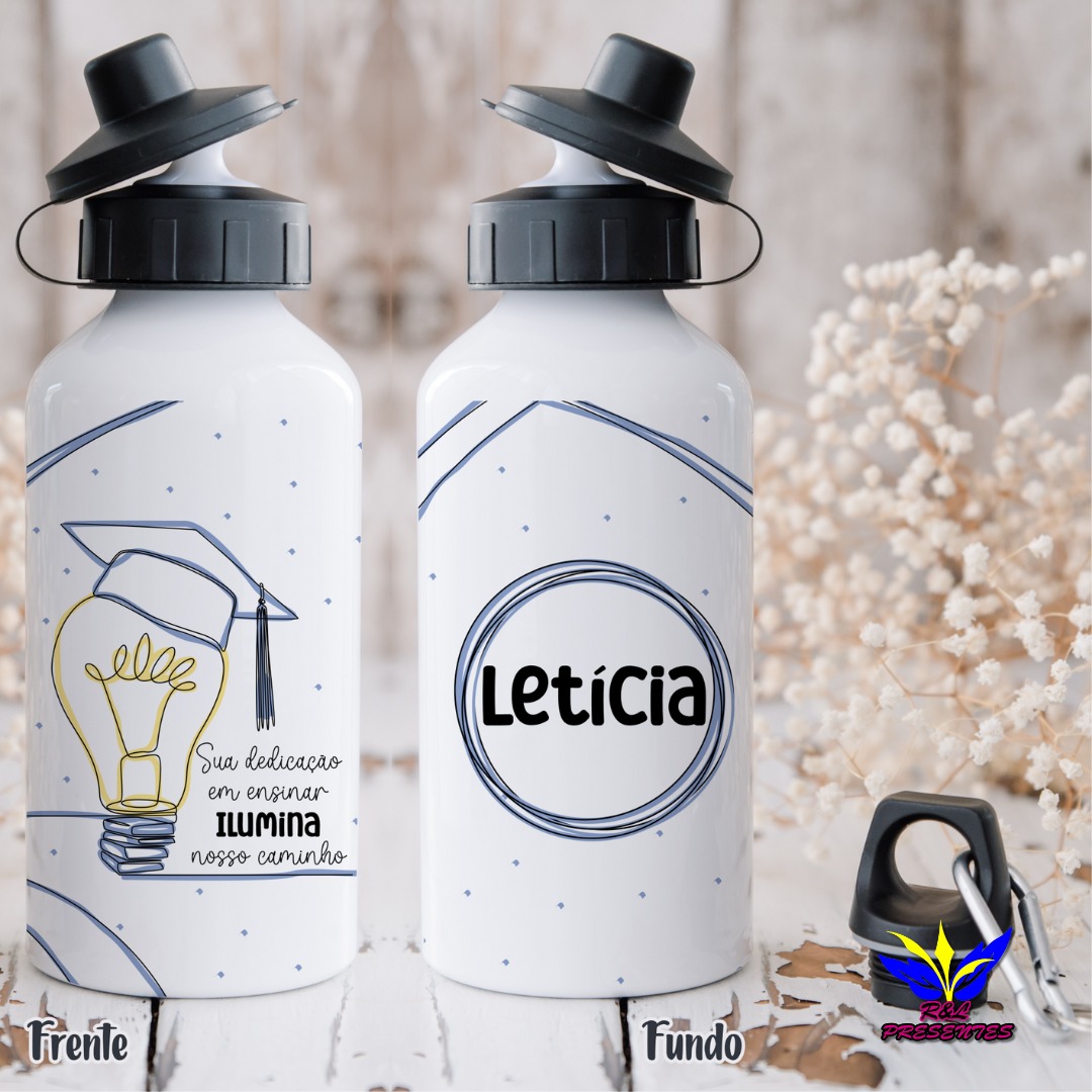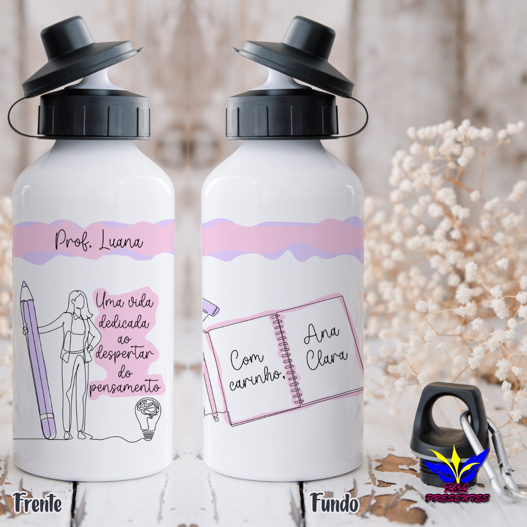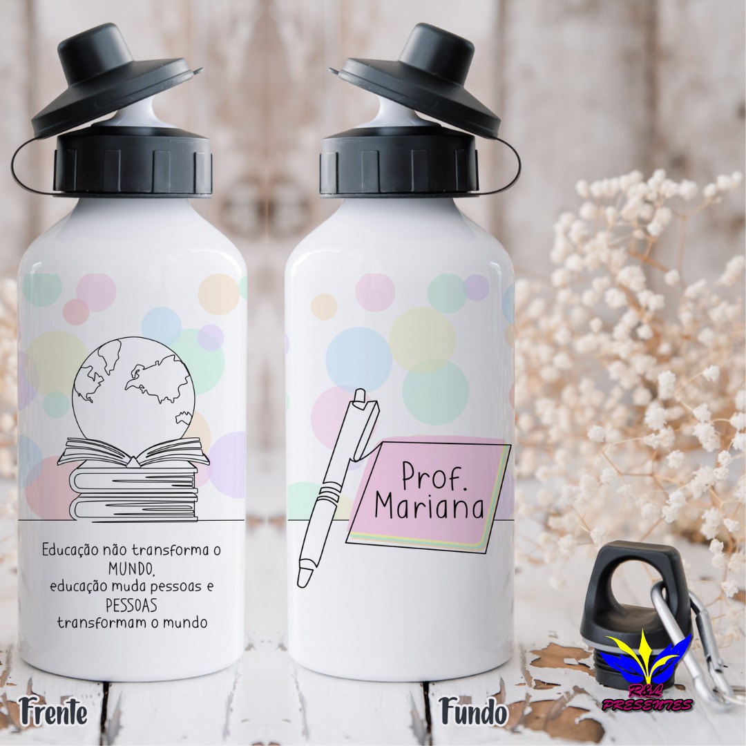 Na RL Presentes, além das canecas, as garrafas personalizadas são uma escolha charmosa e super útil! São itens que os professores podem usar no dia a dia em sala de aula, tornando o presente ainda mais especial, não é incrível? Você pode escolher entre vários modelos de estampas ou até mesmo personalizar a garrafa do seu jeito, deixando-a única e com a cara do presenteado.