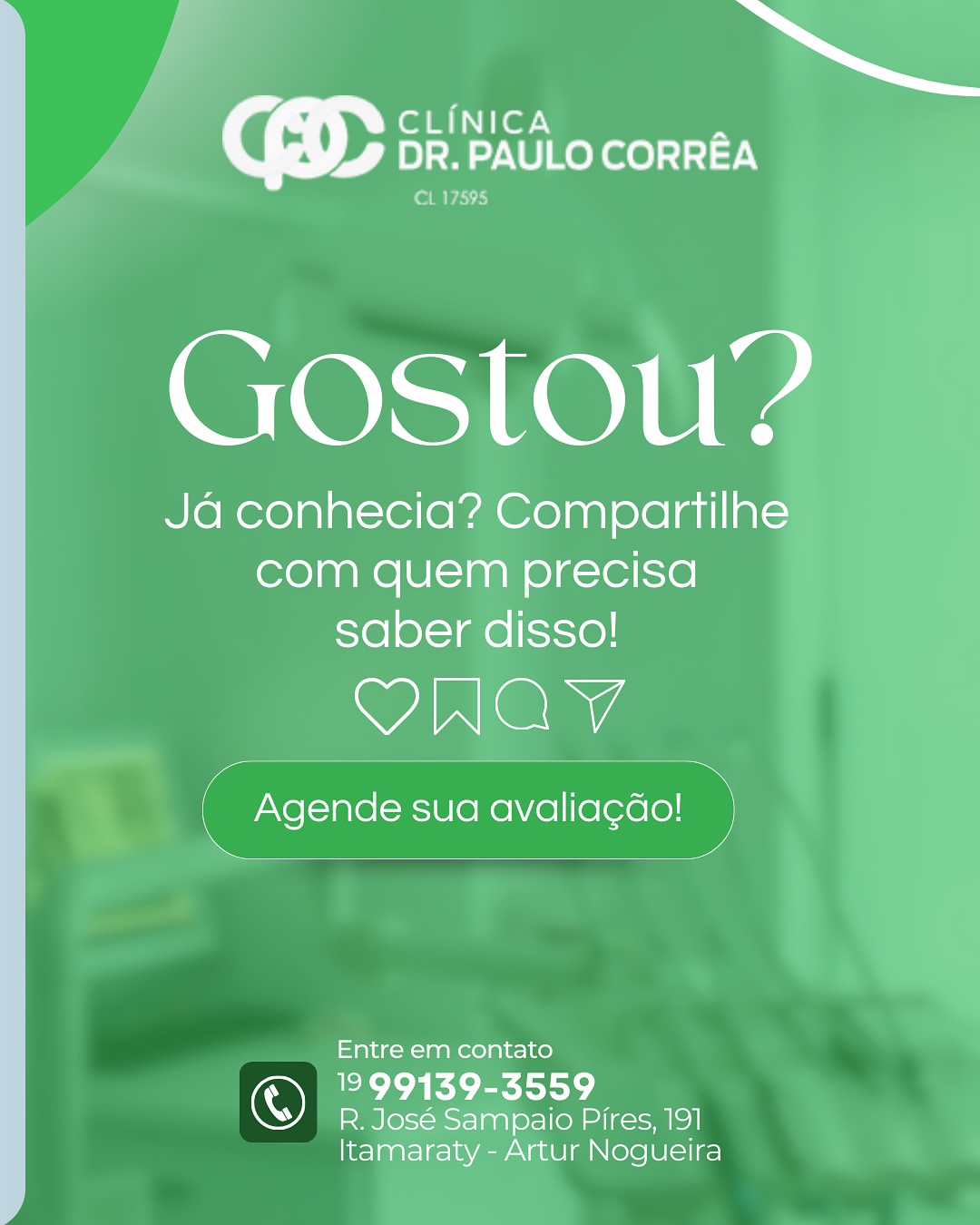 Na Clínica Dr. Paulo Corrêa, em Artur Nogueira, cada paciente é atendido com cuidado, em um espaço moderno e acolhedor, pensado para garantir tratamentos de qualidade e devolver a confiança de sorrir.