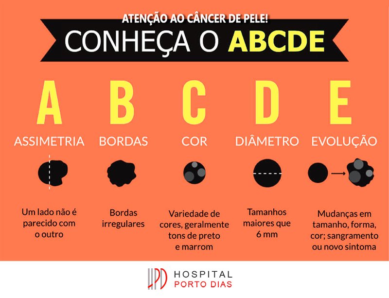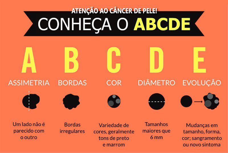 E – Evolução: Mudanças percebidas ao longo do tempo, como crescimento rápido, alteração na forma ou cor, precisam ser avaliadas imediatamente por um dermatologista.