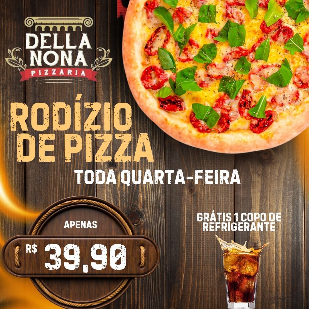 Quer saborear uma deliciosa pizza em boa companhia? Então não pode perder a tradicional quarta-feira de rodízio na Della Nona Pizzaria! Com mais de 60 sabores, entre doces e salgadas, o rodízio é a oportunidade perfeita para você reunir família e amigos e aproveitar uma noite cheia de sabor.
