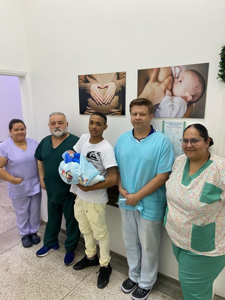 A equipe médica, comandada pelo médico Dr. Marcos, também comemorou a chegada da nova vida.