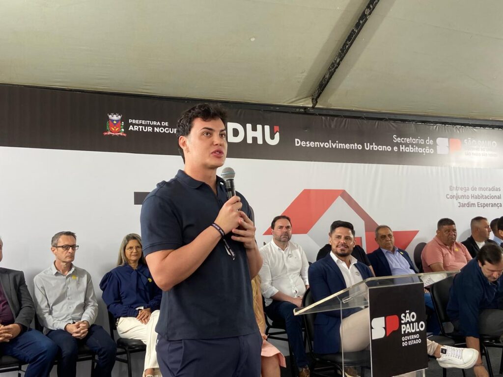 Em seu discurso, o prefeito Lucas Sia relembrou todo o processo desde o início e ressaltou que o trabalho foi desenvolvido de forma transparente pela CDHU. Ele desejou sorte às famílias sorteadas e afirmou que a administração municipal já trabalha no processo para viabilizar mais 150 moradias pelo programa Minha Casa, Minha Vida.