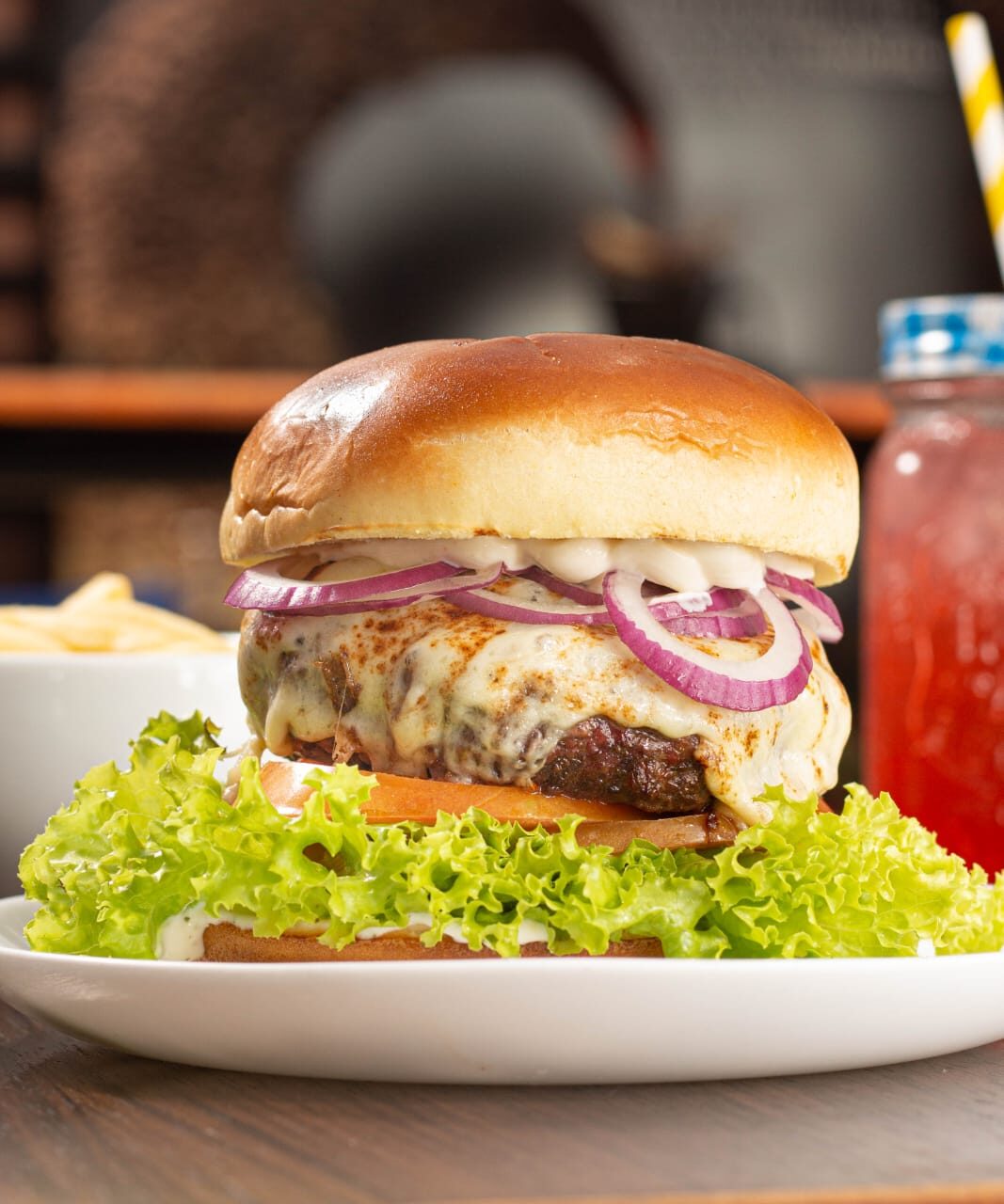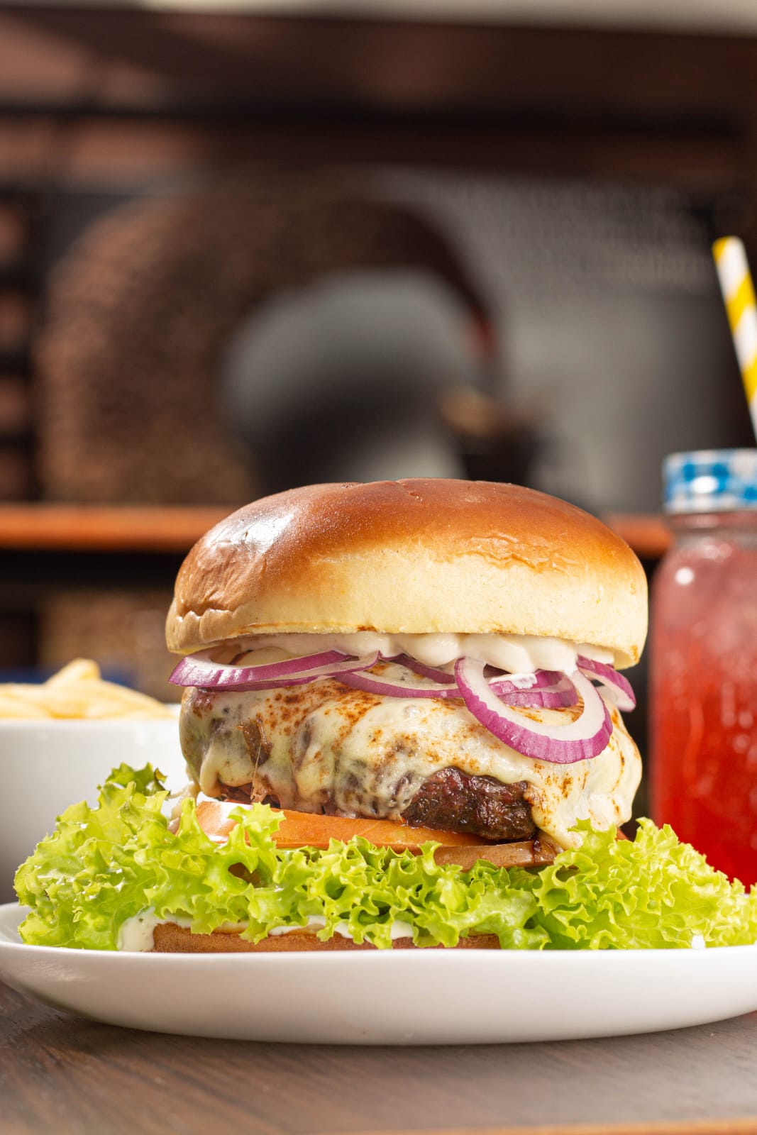 - Jazz Burger: Pão de hambúrguer, generoso blend de carne bovina 250g, cheddar, molho especial, anéis crocantes de cebola roxa, alface e tomate fresquinho.