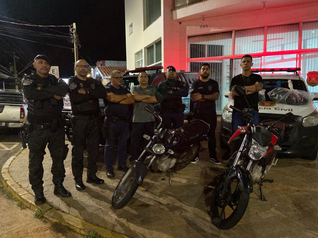 As equipes se deslocaram até um endereço indicado e avistaram a motocicleta. Após um período de monitoramento, um indivíduo suspeito de participação no crime foi visto no local e abordado.
