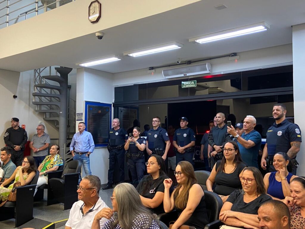 Durante a solenidade, o vereador Cicinho destacou a trajetória de Hélio na GCM, lembrando que ele já ocupou o cargo de comandante da corporação, sempre demonstrando comprometimento com a população e com a tropa.