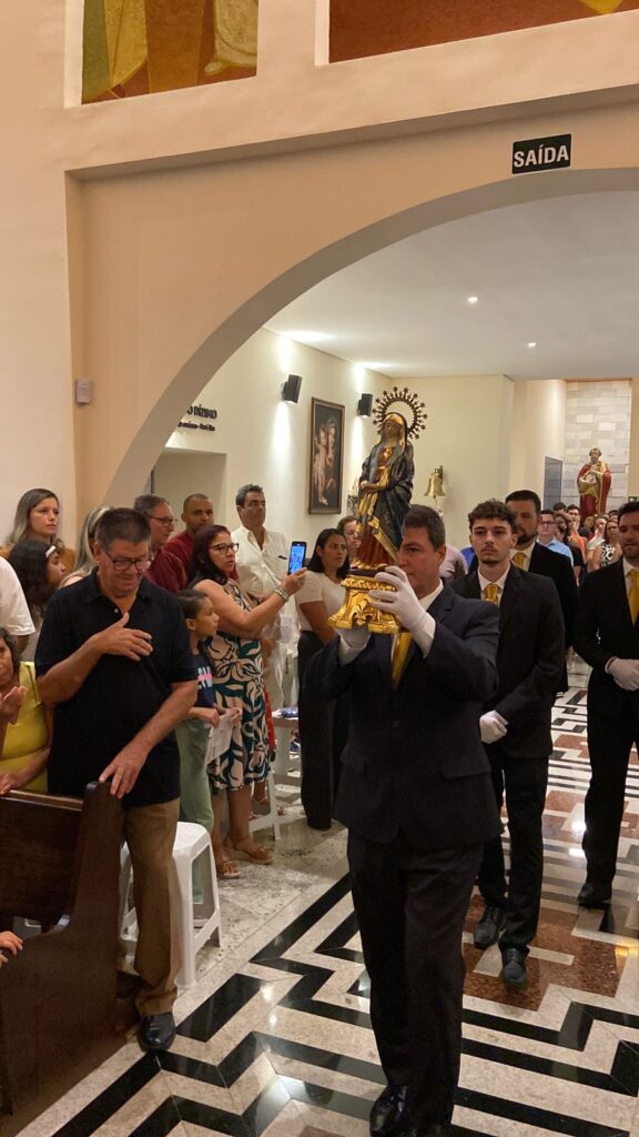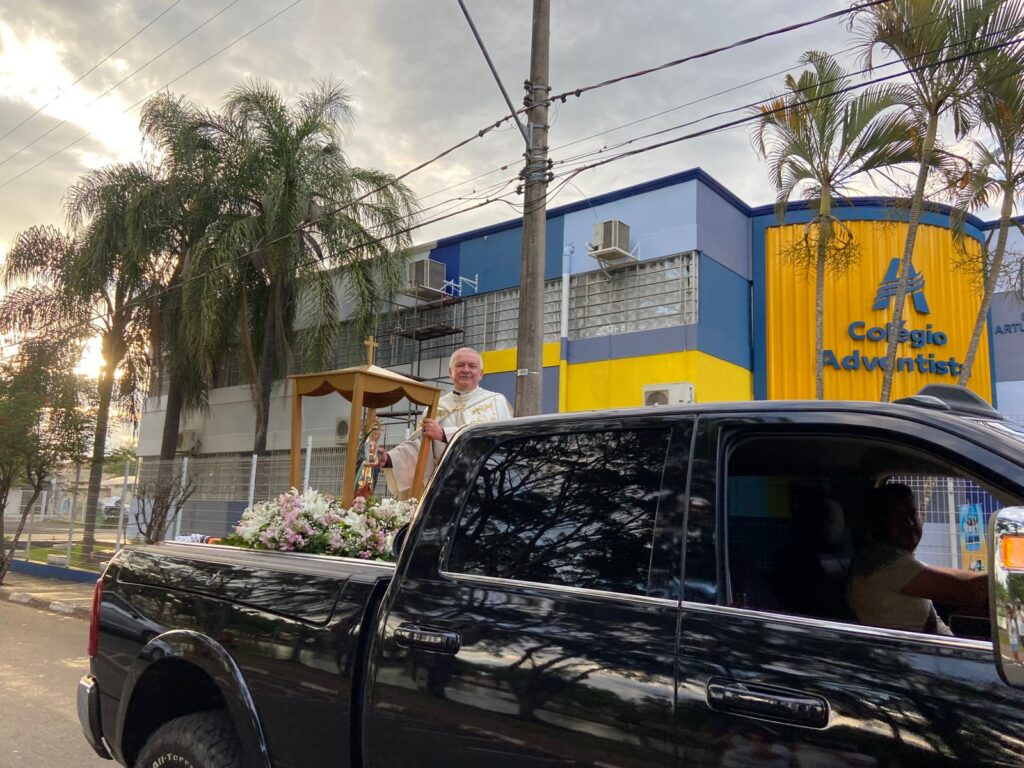 Em seguida, a imagem seguiu em carreata pelas ruas da cidade até a Matriz Nossa Senhora das Dores, onde foi celebrada uma missa com a presença de centenas de fiéis.