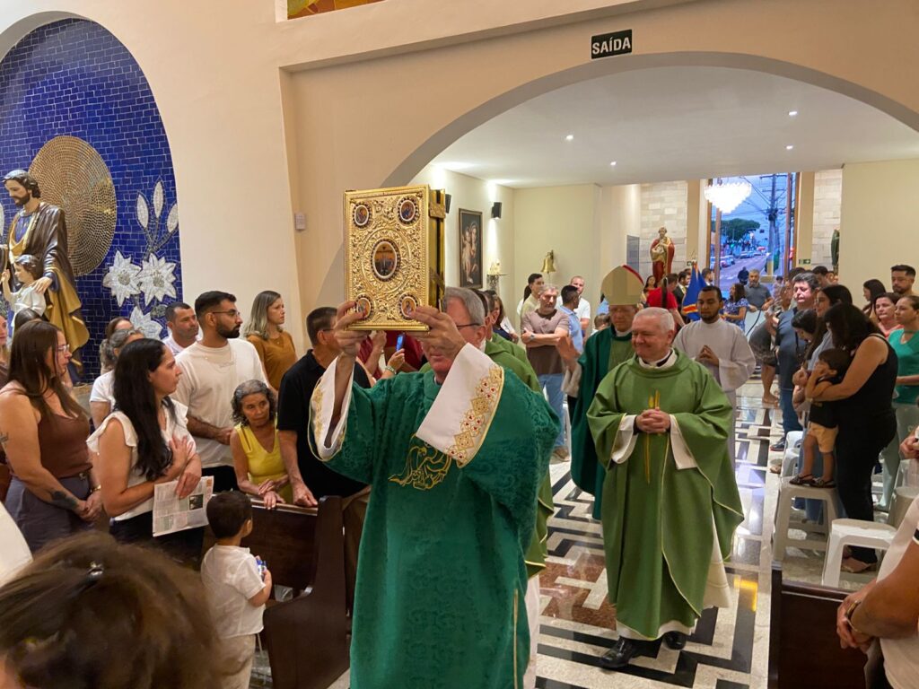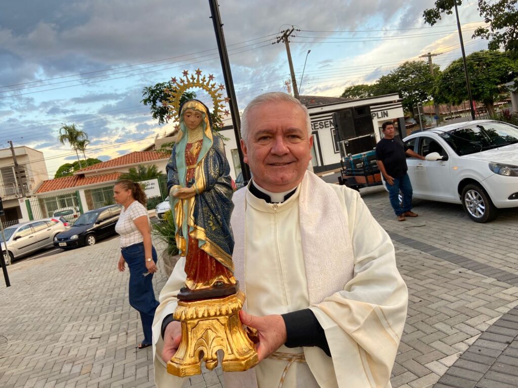 A imagem chegou por volta das 18h e foi entregue pelo bispo diocesano Dom José Roberto Fortes Palau ao padre Edson Tagliaferro, em uma das entradas da cidade, próximo à passarela do Jardim Blumenau.