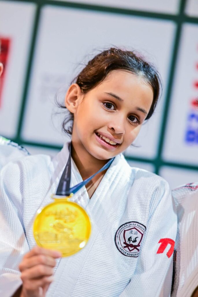 O destaque do dia foi Maria Gabriela, de 11 anos, que venceu todas as lutas e conquistou o título da categoria Sub13 até 28kg Graduado.