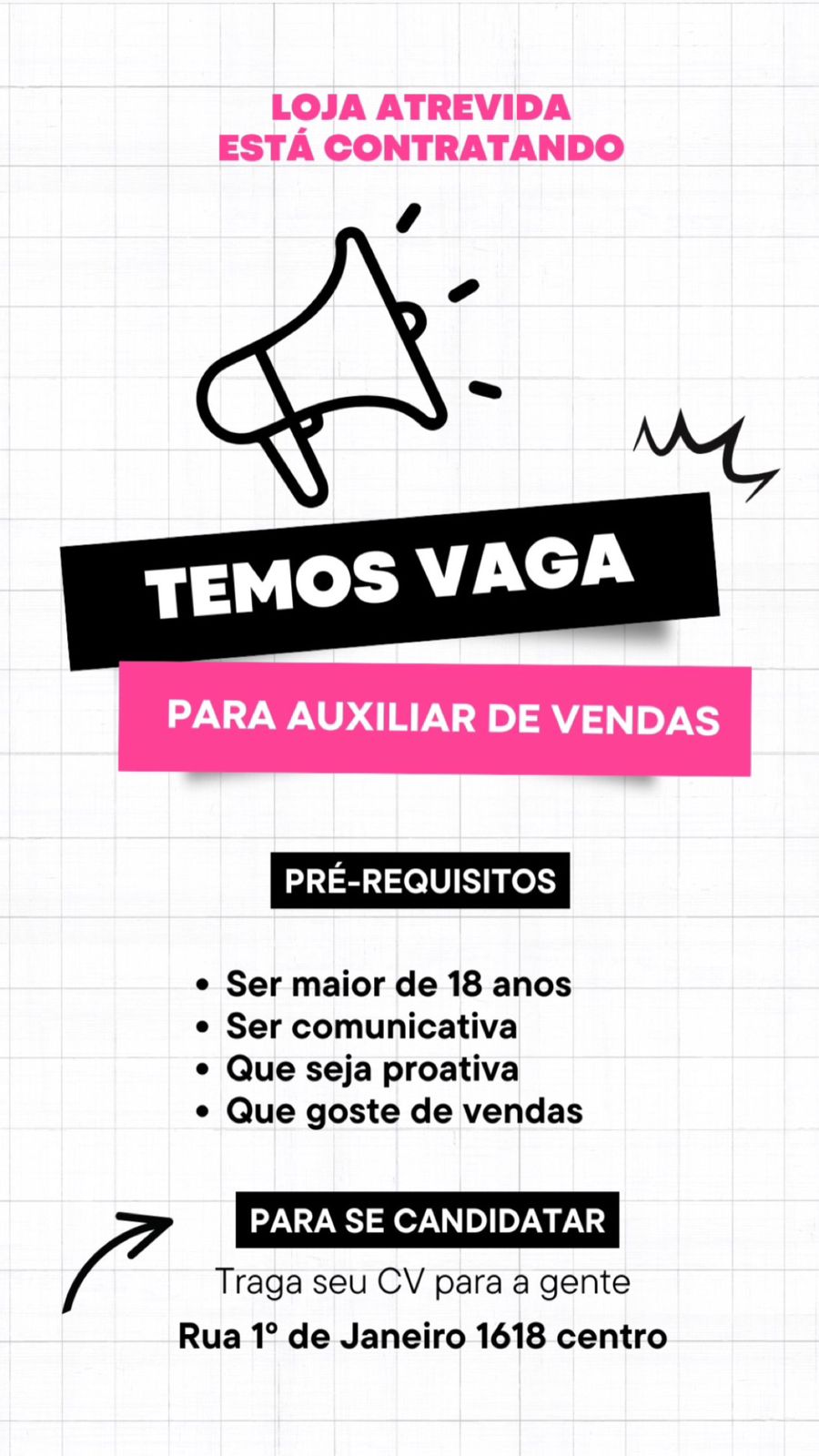 Loja Atrevida contrata auxiliar de vendas, confira!