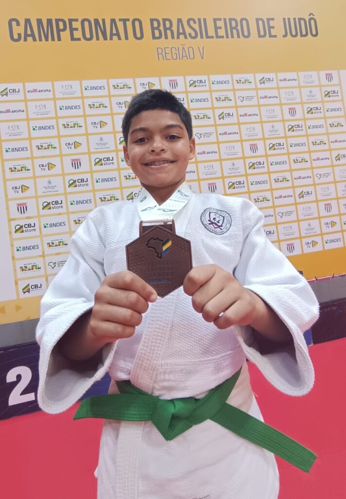 Com apenas 10 anos de idade, Lucas Santos é mais um nogueirense de destaque no Judô. Aluno do Projeto Judô Esporte Social, realizado pela Secretaria de Esportes de Artur Nogueira, Lucas obteve sua maior conquista na modalidade esse final de semana. O jovem conquistou a medalha de bronze na categoria Sub13 Meio Leve e subiu no pódio da Campeonato Brasileiro de Judô da Região V.