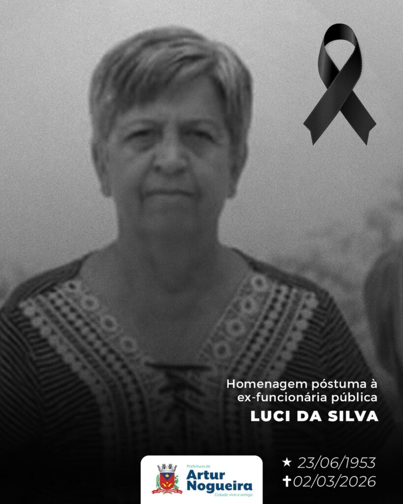 A Prefeitura de Artur Nogueira manifesta profundo pesar pelo falecimento da ex-servidora pública Luci da Silva, ocorrido nesta segunda-feira (2), aos 72 anos.