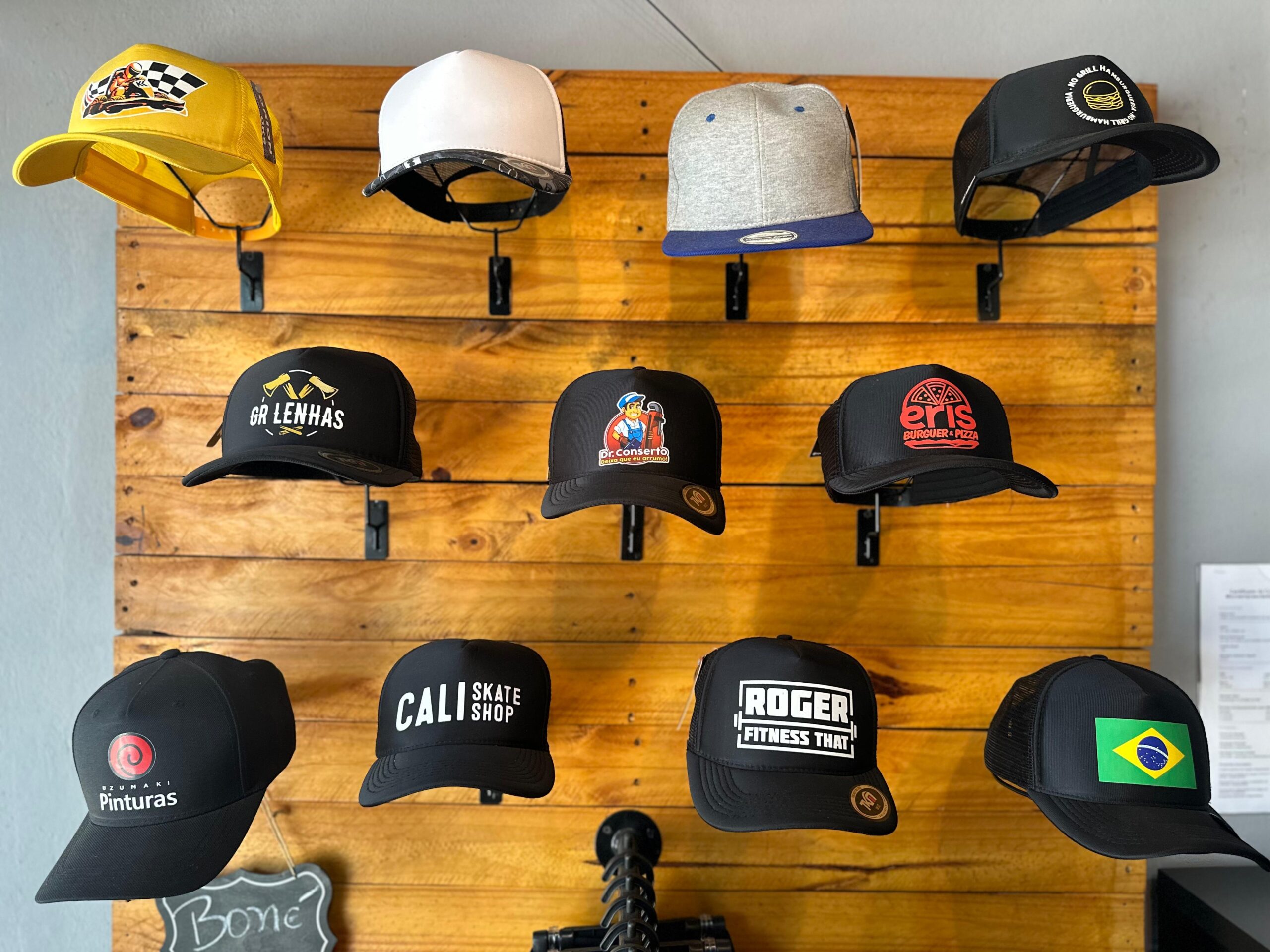 Bonés exclusivos personalizados com a sua arte, podendo ser adquiridos a partir de uma única unidade.