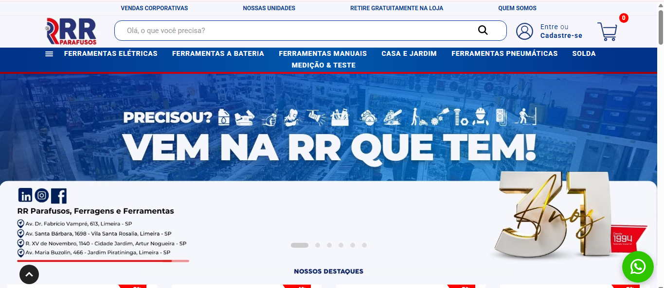 A RR Parafusos acaba de lançar seu novo site de compras online, desenvolvido para facilitar a vida de quem precisa de ferramentas, equipamentos e materiais de construção com agilidade e segurança. Agora, é possível fazer pedidos diretamente do celular ou computador, de forma rápida e prática, sem precisar sair do local da obra ou da manutenção.