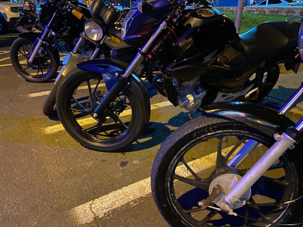 Várias motos e bicicletas motorizadas com diferentes infrações de trânsito foram apreendidas.