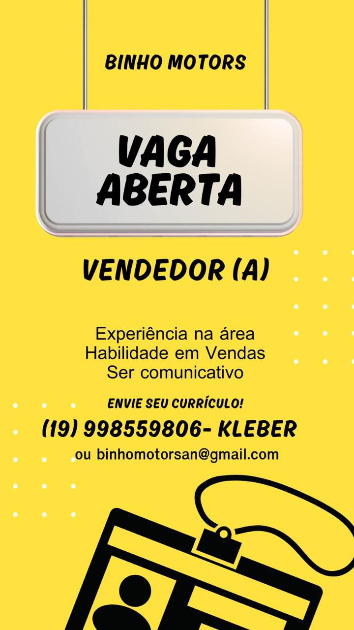 A Binho Motors, revenda multimarcas de veículos e vans, anunciou a abertura de um processo seletivo para a contratação de Vendedor (a). A empresa busca profissionais dinâmicos para atuar em sua equipe de vendas.