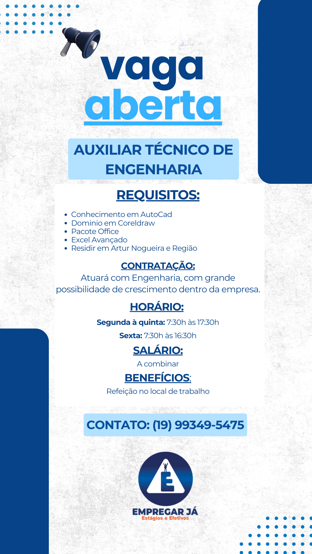 Se você domina o AutoCAD e busca uma empresa onde possa crescer profissionalmente, essa vaga é sua. A Microlins está em busca de um Auxiliar Técnico para atuar em Artur Nogueira e região.