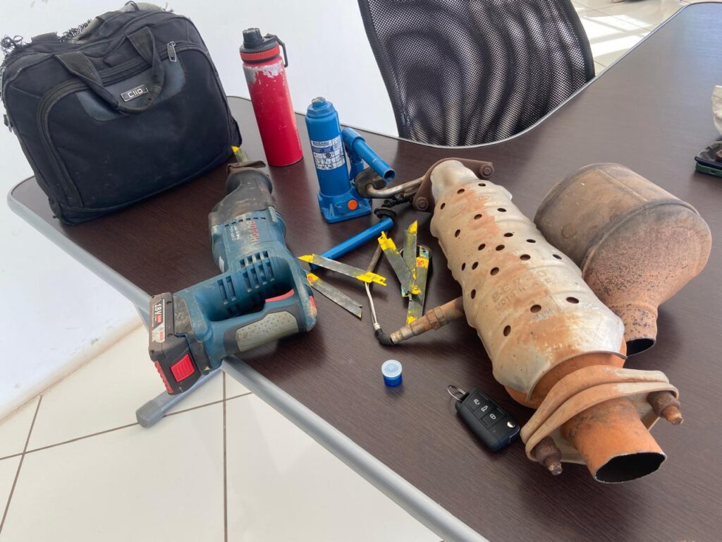 Questionados, os indivíduos inicialmente alegaram que trabalhavam com serralheria. No entanto, ao serem solicitados a informar o endereço da empresa, mudaram a versão e confessaram que retiravam os catalisadores de veículos para depois vendê-los.