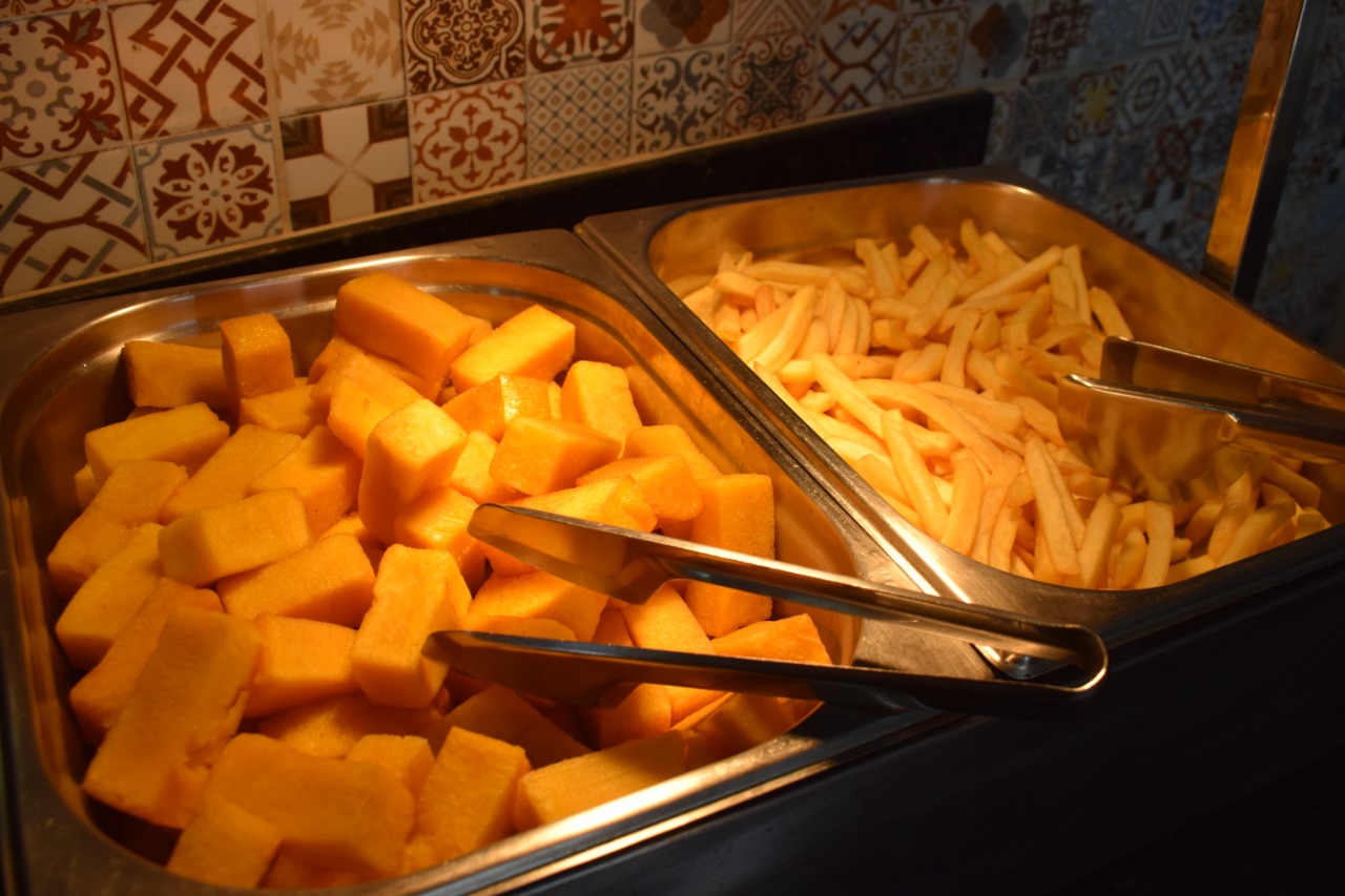As opções de acompanhamentos também são um destaque à parte. Cenoura com vagem na manteiga, batata frita dourada na medida certa, moqueca com molho de camarão e saladas frescas que completam o prato com o frescor necessário para uma refeição balanceada.
