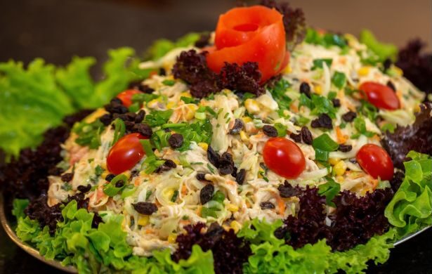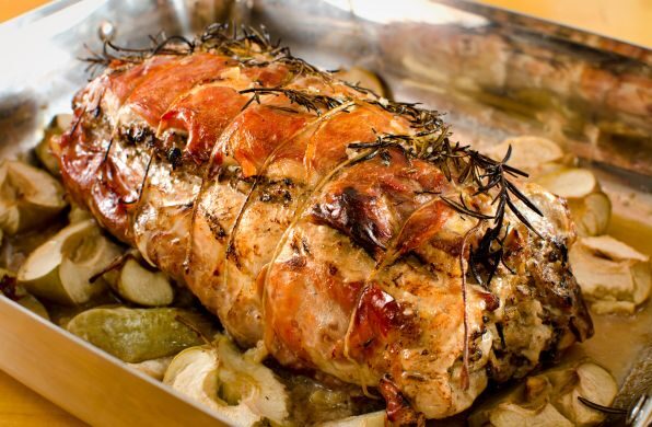 – Carnes Assadas: Lombo Suíno recheado com calabresa e queijo, Pernil Assado e Tender ao molho de laranja.