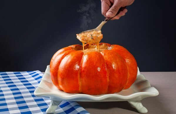 – Bacalhau e frutos do mar: Bacalhoada e Camarão na Moranga.