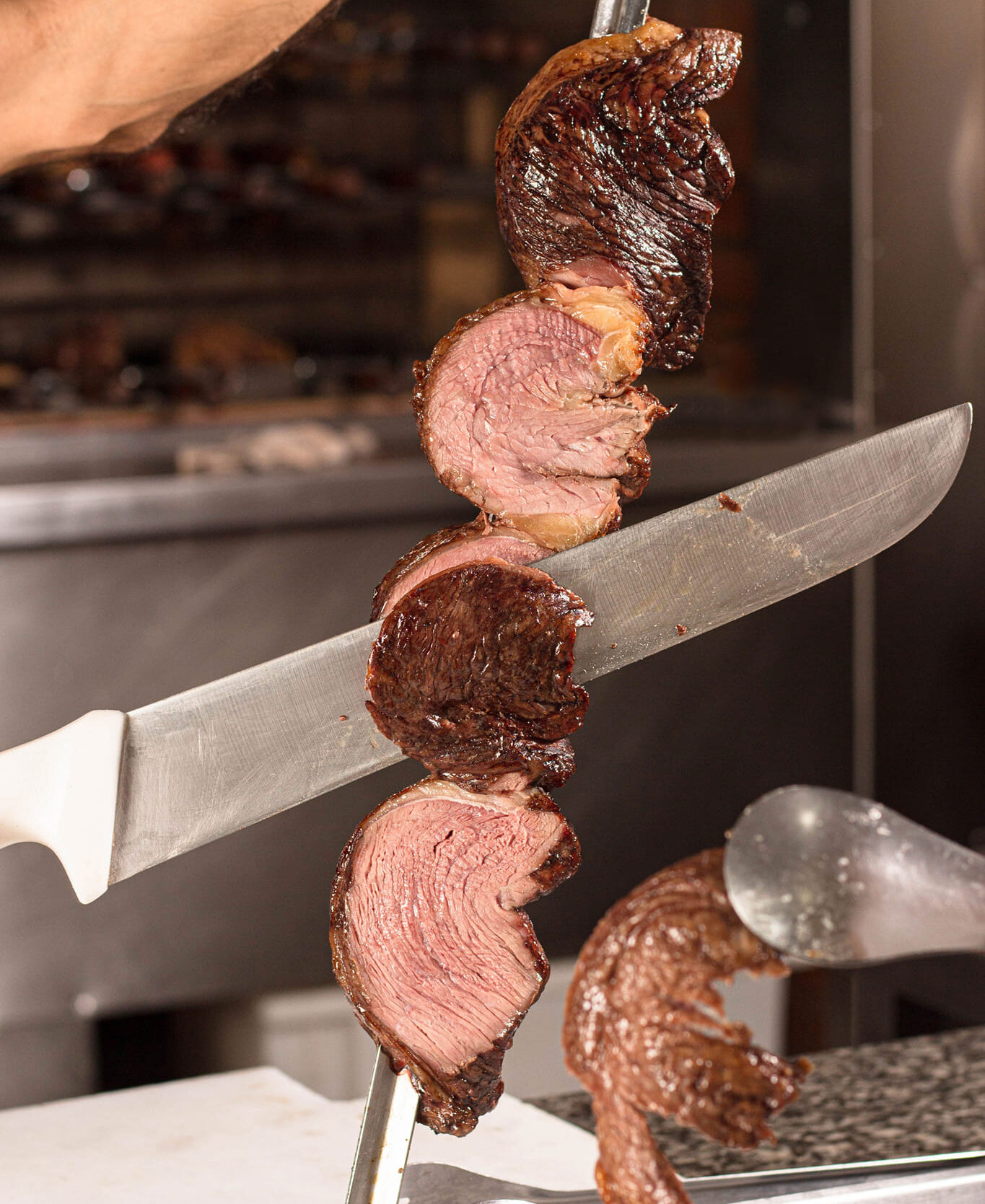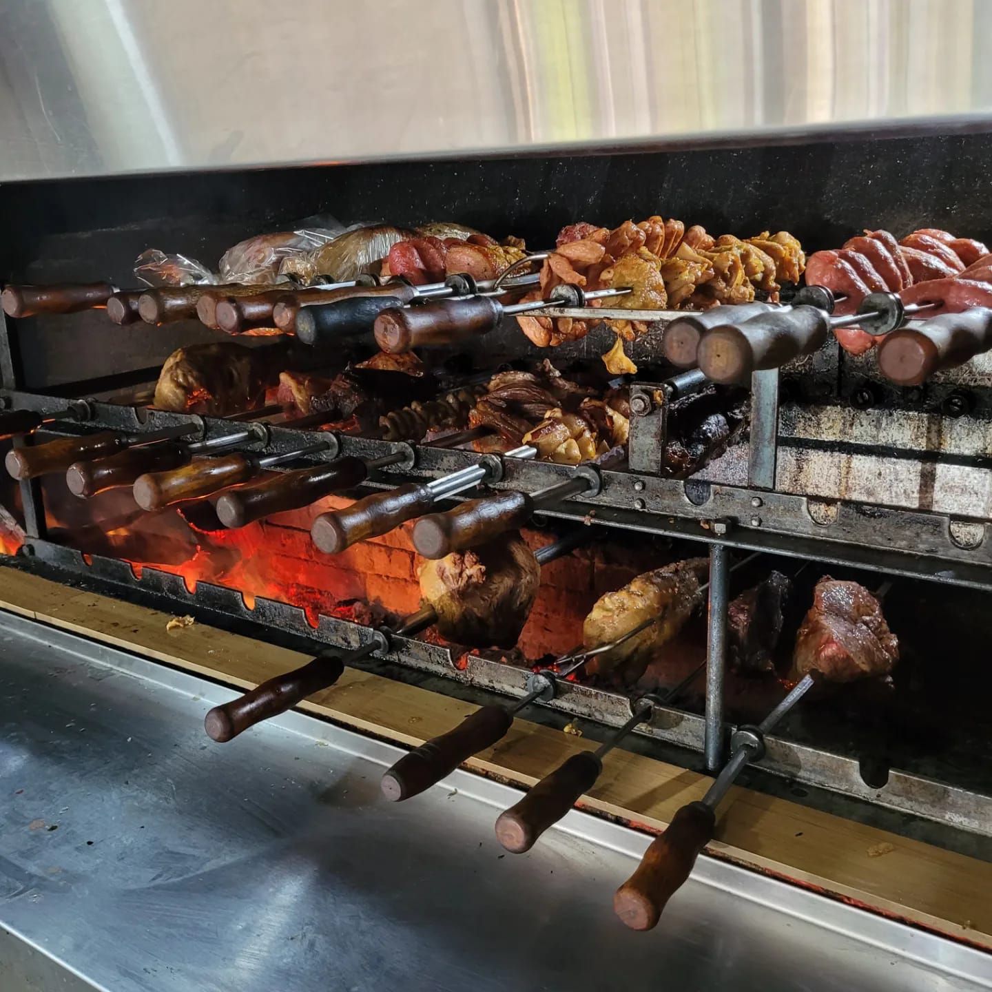 Todos os dias, o restaurante serve cortes nobres preparados na hora, com opções suculentas como frango, coxa e sobrecoxa, linguiça de frango, coração, medalhão de frango, panceta suína, fraldinha, maminha, contra filé, cupim e costela bovina.