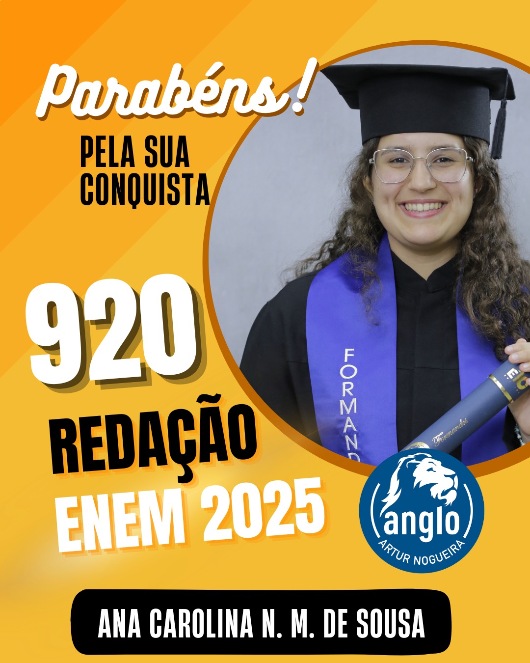 O Colégio Anglo Artur Nogueira parabeniza todos os alunos que conquistaram excelentes notas no ENEM, com destaque especial para aqueles que se sobressaíram na redação. As artes comemorativas publicadas celebram não apenas os resultados, mas todo o percurso de estudo, persistência e amadurecimento vivido durante a trajetória escolar.