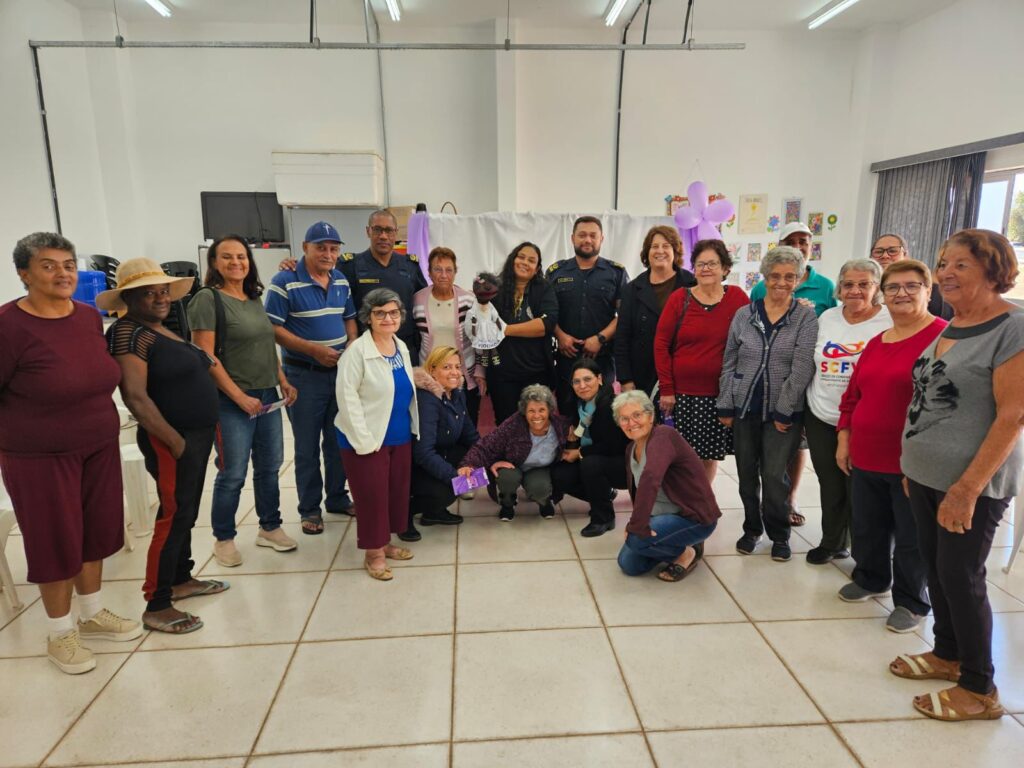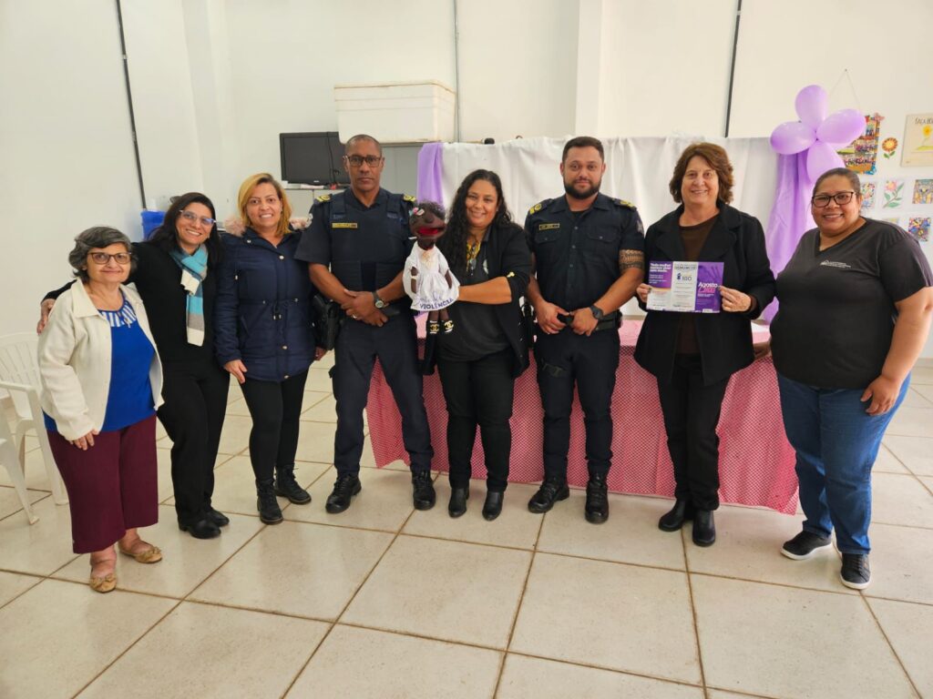 O Projeto Tempo Feliz participou, nesta segunda-feira (11), de uma roda de conversa lúdica sobre o “Agosto Lilás”, campanha nacional de conscientização pelo fim da violência doméstica contra a mulher. A atividade foi ministrada pela Secretaria de Segurança Pública e contou com a participação especial da “Violeta” — fantoche educativo manuseado pela educadora Adriana Alves Ferreira.
