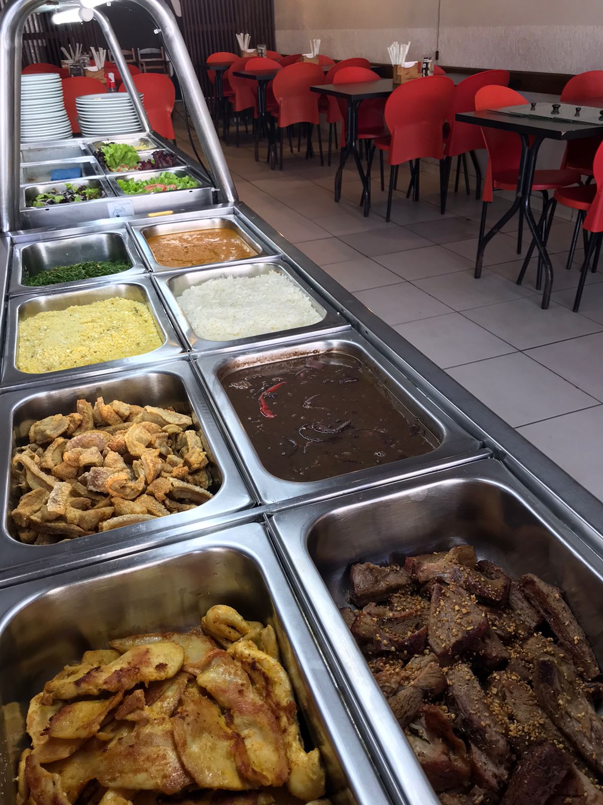 O almoço é self-service à vontade, e o preço é de apenas R$ 24,99! O ambiente é aconchegante e acolhedor, com um cardápio repleto de opções deliciosas para matar a sua fome