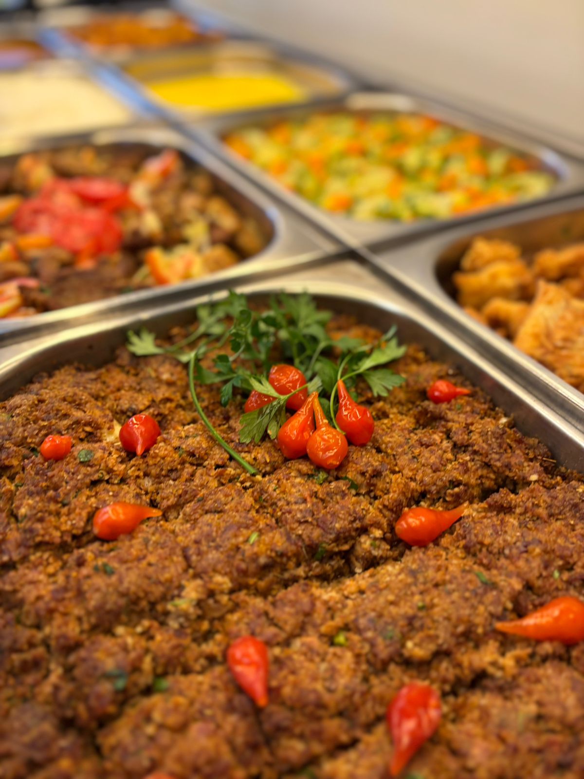 Massas, carnes variadas, saladas frescas, dobradinha, feijoada e muito mais