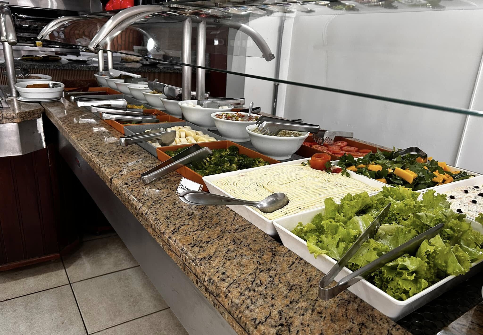 No Tropilha Grill, o self-service é completo: pratos quentes, massas, guarnições caseiras, saladas frescas e até opções vegetarianas, tudo fresquinho e feito com carinho. É de dar água na boca!