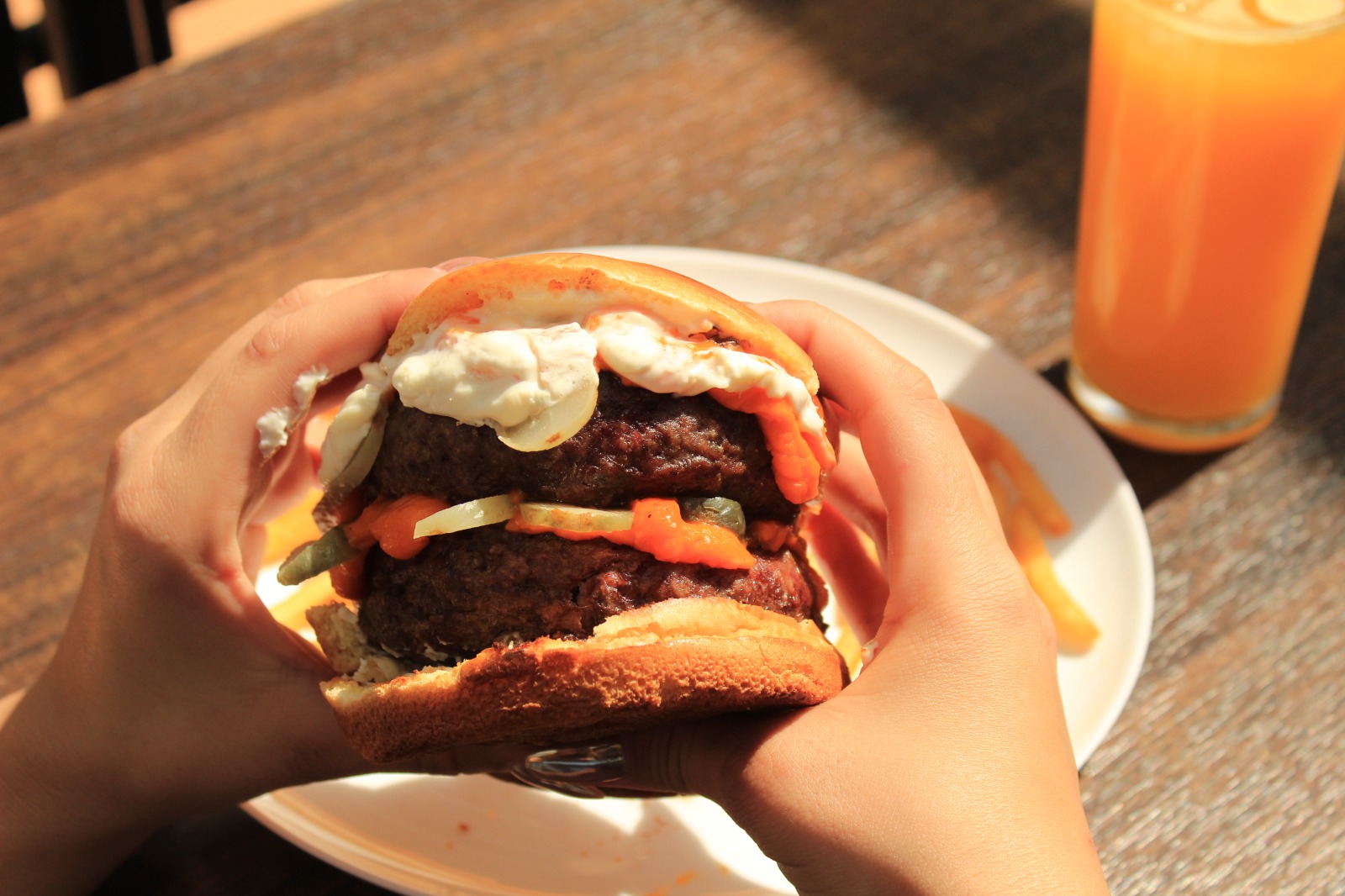 Punk Rock Burger: dois blends 250g, cheddar, cream cheese, molho especial e picles.