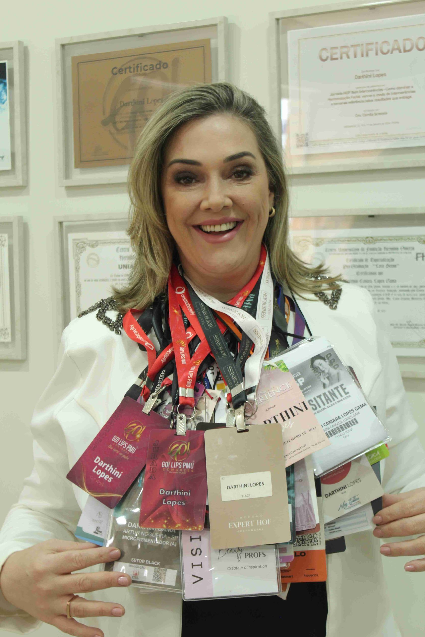 Darthini Lopes possui mais de 15 anos de experiência e mais de 100 certificações. É especialista em Micropigmentação, Correções e Despigmentação a Laser, além de ser referência nacional e internacional em Micropigmentação Paramédica.