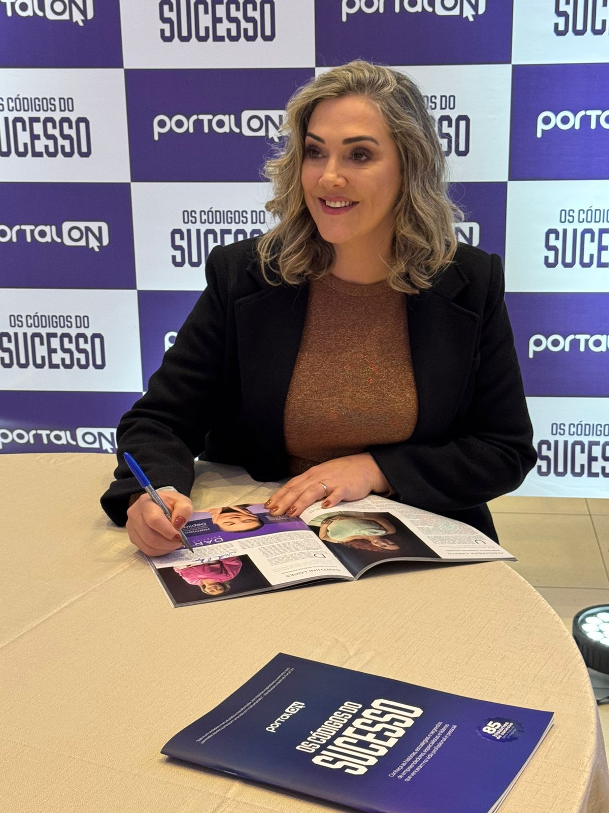 Durante o evento de lançamento da revista Os Códigos de Sucesso, Darthini Lopes concedeu entrevistas exclusivas ao Portal ON e realizou uma sessão especial de autógrafos, compartilhando sua trajetória de superação e conquistas.